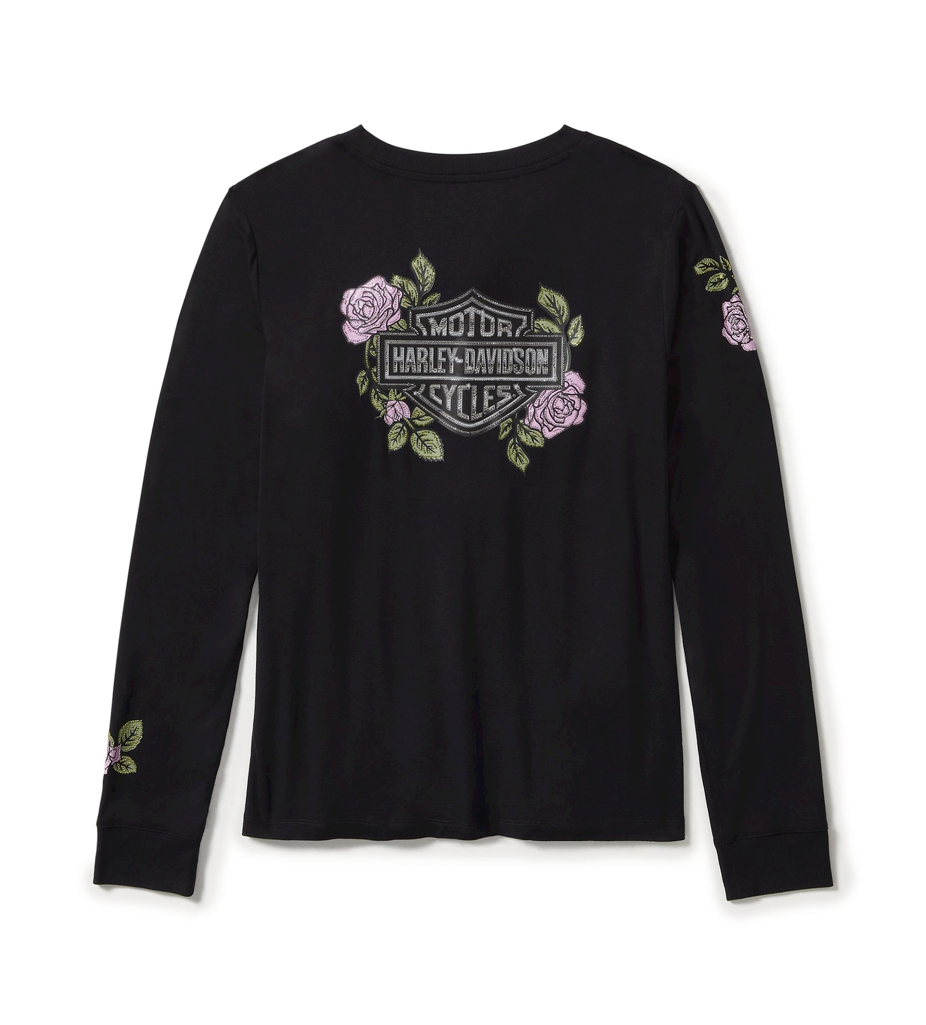 Harley-Davidson® Women's Rose & Thorn Bling Long Sleeve Top - Harley Black