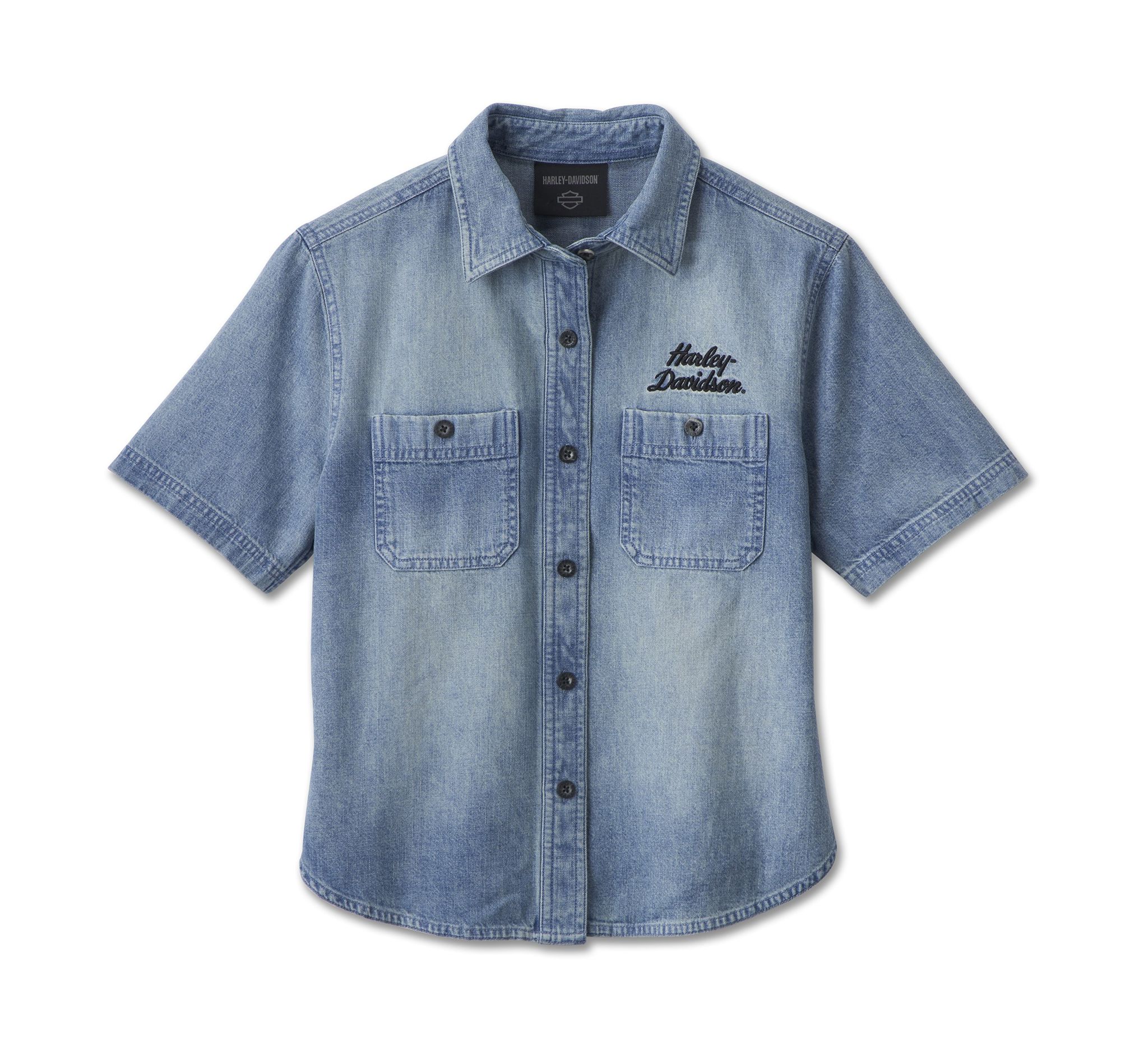 Harley-Davidson® Women's Cool Blue Boxy Button Down Shirt