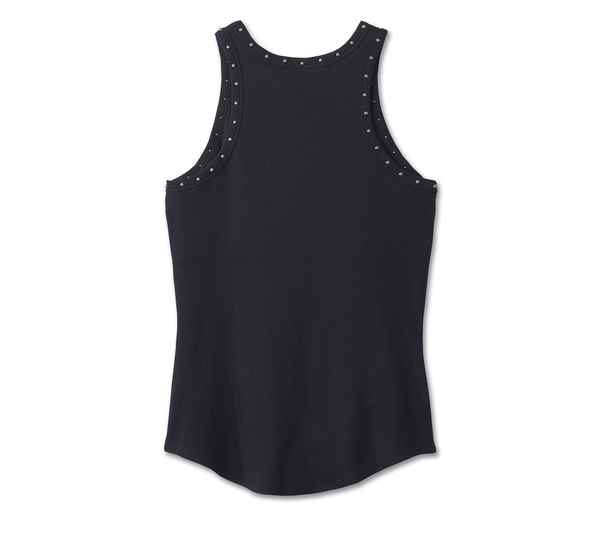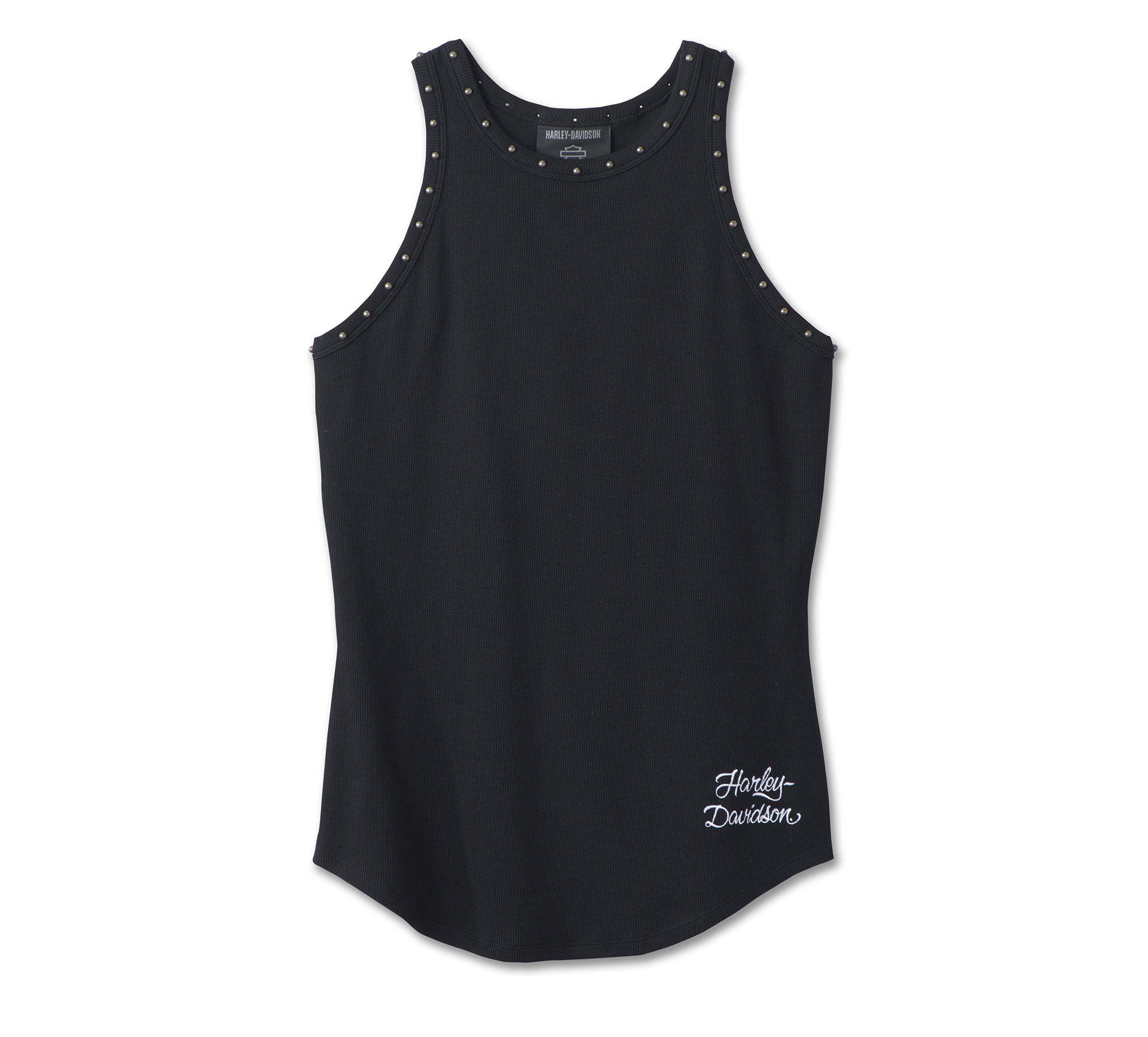 Onze Limited-Edition Sedona Tank wordt extra stijlvol dankzij de studs. Deze tanktop voor vrouwen is gemaakt van ringgesponnen geribbeld katoen met een vleugje spandex voor extra stretch, heeft een gebonden ronde halslijn en een flatterende hemdstaartzoom die je beenlijn verlengt. Afgewerkt met gewelfde studs en een kus van onze geborduurde branding bij de zoom voor een ingetogen H-D-look.