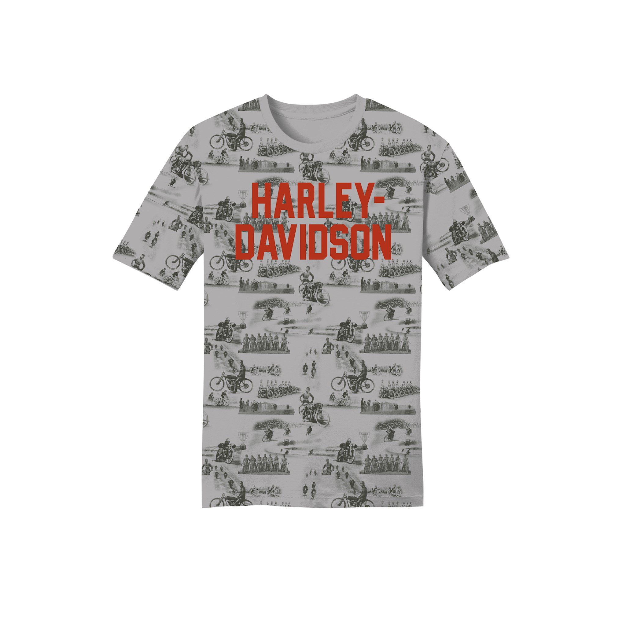 Our Wizard Tee is hard to miss, thanks to the allover custom print that pays tribute to Harley’s proud racing history. This print is the perfect backdrop for our vibrant namesake showcased on the front. Its top-quality pure cotton with a non-restrictive rib-knit neckline keeps you comfortable all day and night.