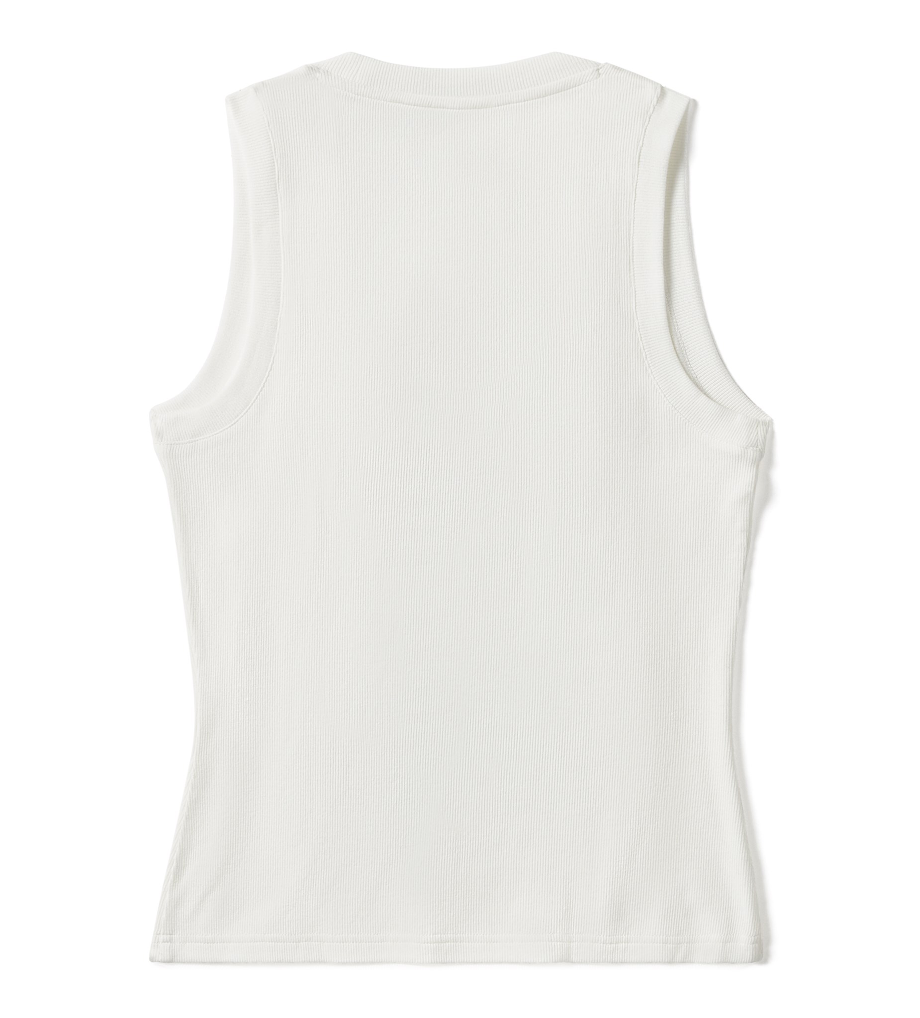 58% cotton, 38% modal, 4% spandex lightweight 2x2 rib. Slim-fitting silhouette. Deep scoop neck. HPS lenght: 24''.