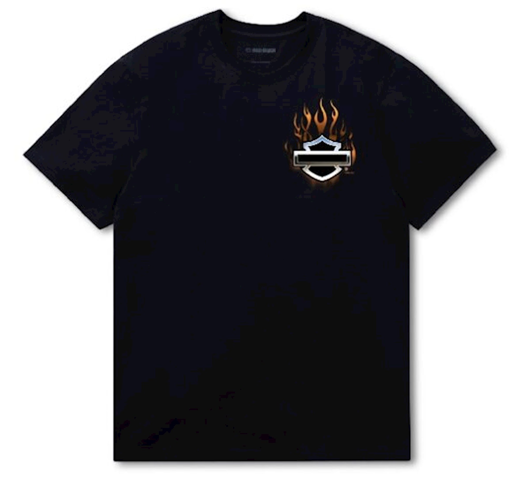 Experience bold style and comfort with the Harley-Davidson Men's Let's F*ing Ride Chrome Skull Short Sleeve T-Shirt. Made with 100% cotton mid-weight jersey, it offers a soft and breathable feel, perfect for everyday wear. The ribbed crew neck ensures durability and a snug fit. This black T-shirt, featuring soft, hand-printed graphics and bold "Let's F*ing Ride," makes a statement for riders who live to ride. Feel confident and confident while riding!