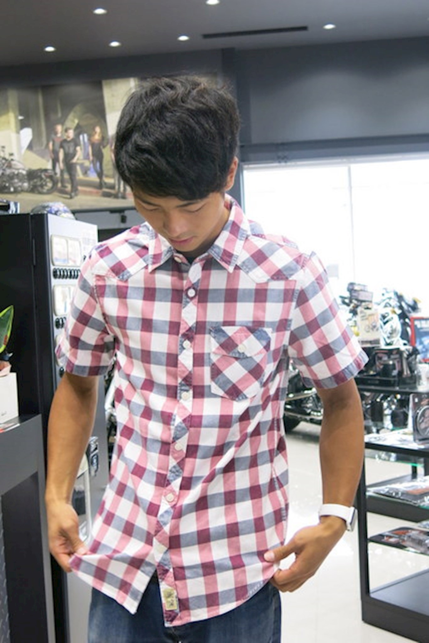 - Harley-Davidson® Men's Plaid Short sleeve Shirt100% cotton twill. Brushed with acid wash. Button front. Button flap chest pocket. Woven label on lower placket. (M) - € 96.49