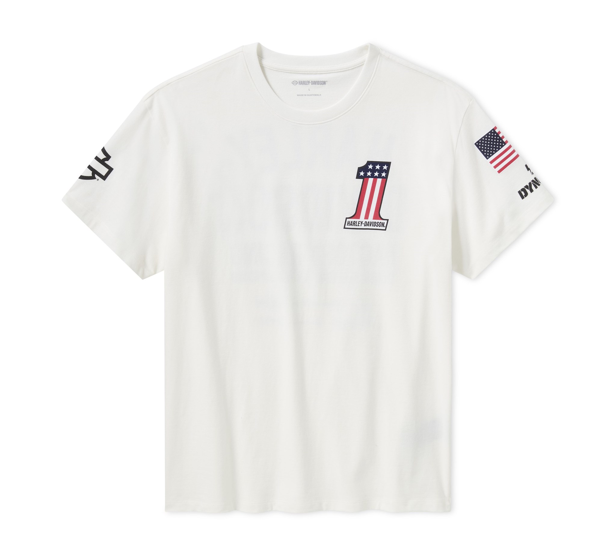 Commemorate several decades of our racing legacy on this special-issue H-D® Championship Tee. It’s made from a breathable, super soft cut of 100% cotton jersey in a relaxed fit with a rib-knit neckline to help keep its shape. This men’s t-shirt is proudly finished with a graphics medley that nods to the sponsors, products, accessories, and championship titles of our factory racing team. Know the history—the arched lettering on back mimics our 1937 racing apparel, while the #1 Logo on front debuted in 1969 to celebrate our AMA Grand National Championship season title. Snag yours while supplies last.