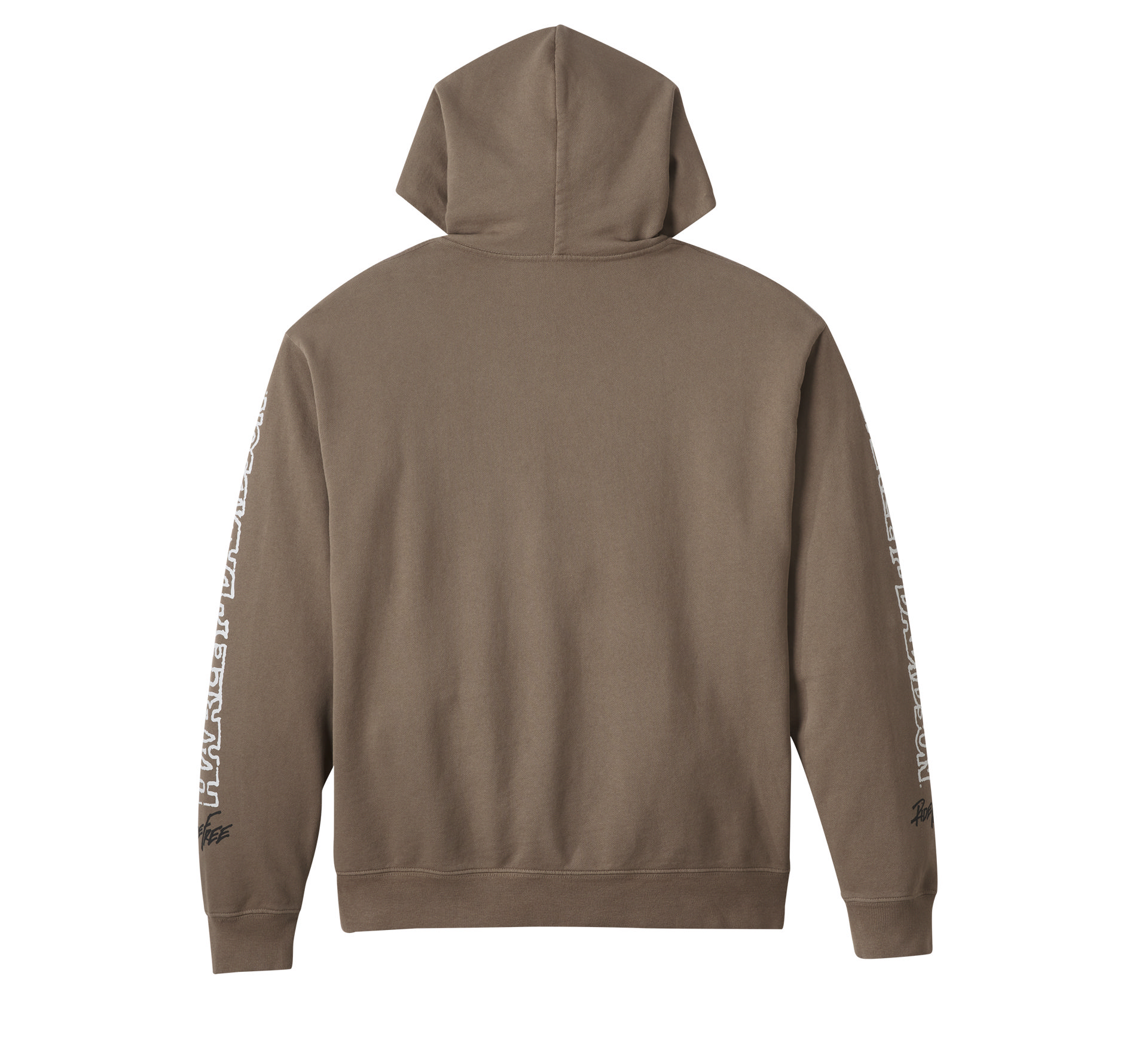 Materialen: 100% cotton heavyweight muti-yarn French terry, garment dyed and enzyme washed. • ZAKKEN: Kangaroo pocket. • Ontwerpdetails: Self-lined overlap hood. Rib-knit cuffs and hem. • Graphics: Soft-hand print.
