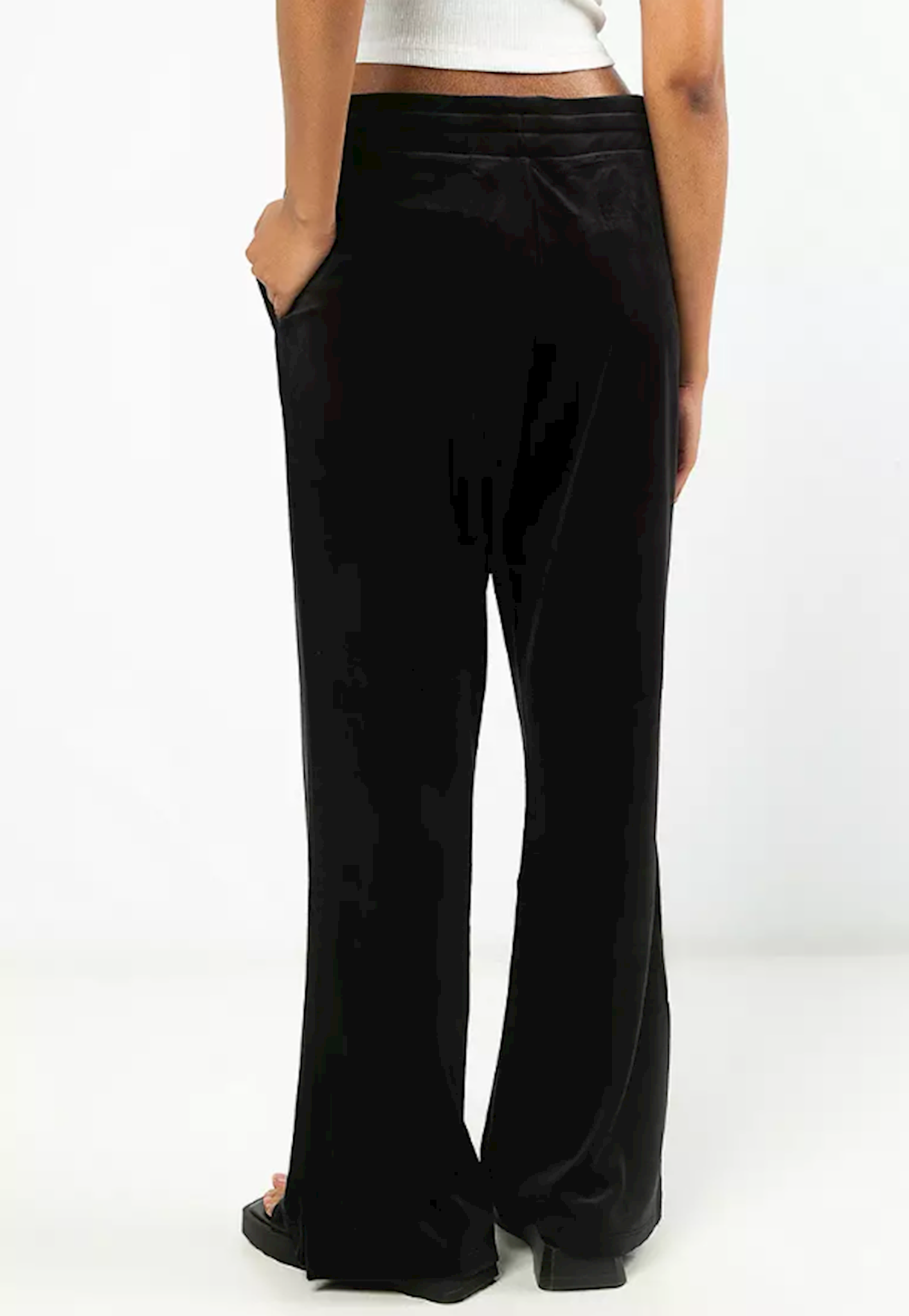 Blijvend comfort krijgt een motorupgrade in onze Velours Bootleg Pant. Deze broek met hoge taille is getailleerd rond de heupen en dijen, met een uitlopende beenopening. Gemaakt voor drukke dagen of gezellige nachten, van een zwaar polyester twill velours met een vleugje elastaan voor extra stretch. Voorzien van ventilatieopeningen aan de zijkanten, een gesmokte elastische tailleband met trekkoord en zakken met drukknopen voor het opbergen van benodigdheden. Met minimale branding in vorm van glanzend ton-sur-ton borduurwerk, zodat je hem kunt combineren met alles in je garderobe.