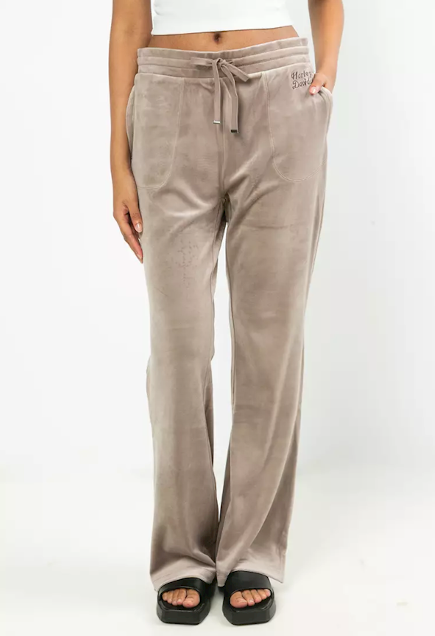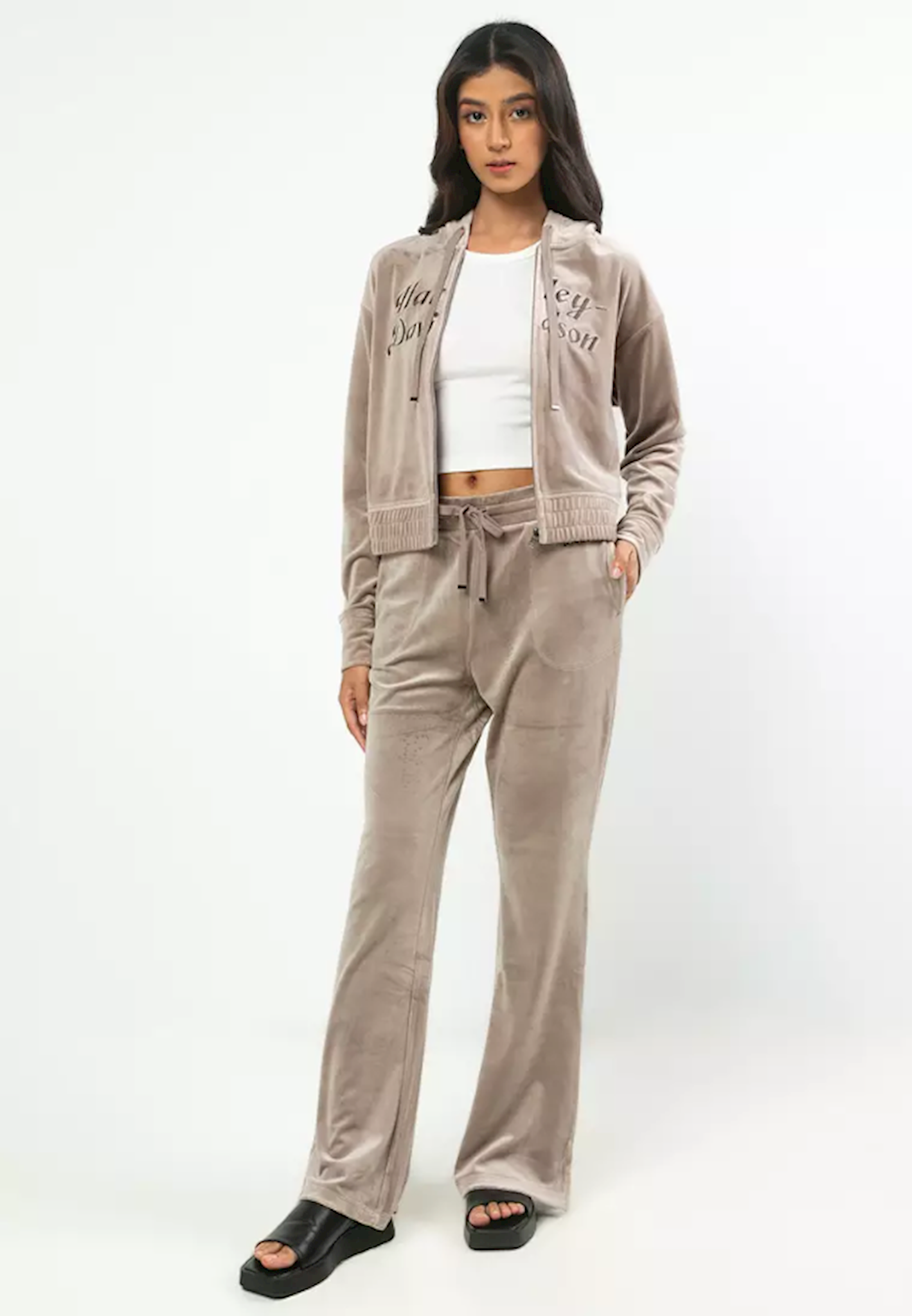 Blijvend comfort krijgt een motorupgrade in onze Velours Bootleg Pant. Deze broek met hoge taille is getailleerd rond de heupen en dijen, met een uitlopende beenopening. Gemaakt voor drukke dagen of gezellige nachten, van een zwaar polyester twill velours met een vleugje elastaan voor extra stretch. Voorzien van ventilatieopeningen aan de zijkanten, een gesmokte elastische tailleband met trekkoord en zakken met drukknopen voor het opbergen van benodigdheden. Met minimale branding in vorm van glanzend ton-sur-ton borduurwerk, zodat je hem kunt combineren met alles in je garderobe.