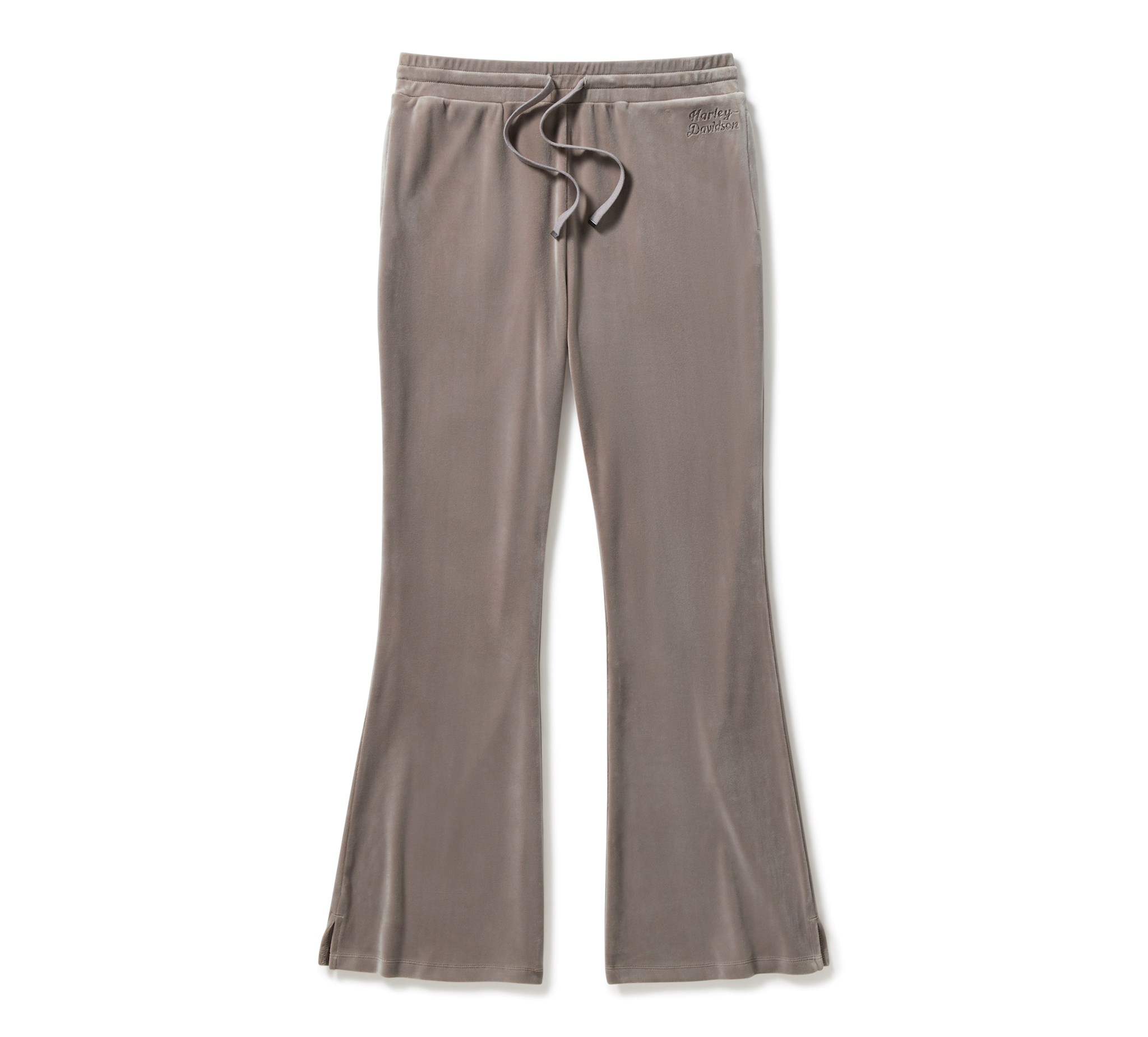 Pasvorm & bewegingsvrijheid: De hoge taille is getailleerd over de heupen en dijen en heeft extra uitlopende pijpen. Materialen: 95% polyester, 5% elastaan, zwaar twill velours. Sluiting: Gesmokte elastische tailleband met platte trekkoorden en platte metalen uiteinden. ZAKKEN: Zakken in de zijnaad met verborgen drukknoopsluiting. Ontwerpdetails: Zijnaad beenventilatie. Tweenaalds coverstitch om de zakken op hun plaats te houden. Graphics: Glanzend ton-sur-ton direct borduurwerk. Binnenbeenlengte: 31 inches.