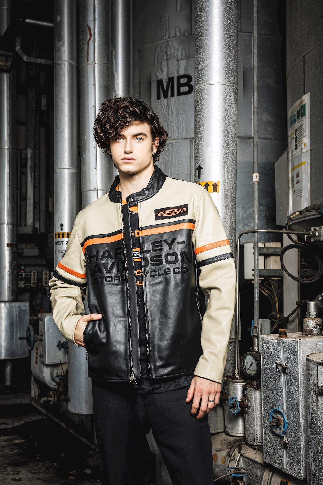 LIMITED EDITION! Fit & Mobility: Fit & Mobility: Action back. • Materials: Materials: Midweight cowhide. 100% nylon lining. • Closure: Closure: Two-way zipper front. Zippered sleeves. • Pockets: Pockets: Welt hand-warmer pockets with zipper closure. Interior welt chest pocket with hidden snap closure. • Design Details: Design Details: Contrast front yoke and sleeves. Leather piecing on chest and upper sleeves. Snap-tab mandarin collar. • Graphics: Graphics: Embroidered twill patch. Embossed. Direct embroidery.