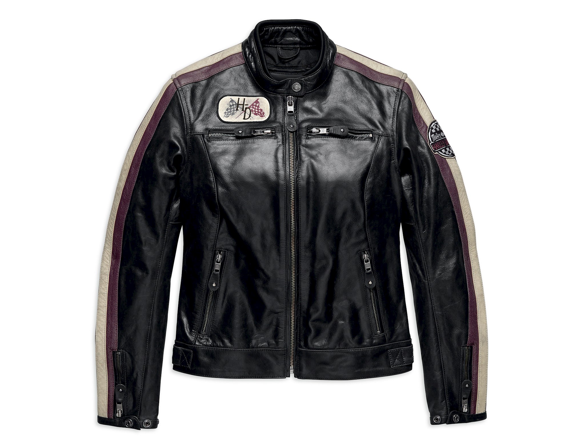 Harley-Davidson® Almena CE Certified Women's Jacket. Made from heavy abrasion resistant buffalo leather with a wax finish. Polyester mesh lining. Removable polyester taffeta zip-out full-sleeve quilted liner with two horizontal pockets. EN 1621-1 CE approved removable body armor on elbows and shoulders. Meets or exceeds CE abrasion resistance, impact test and seam burst requirements for personal protective clothing. Zipper with press studs Slightly preformed sleeves Buckle at waist tabs Two horizontal inner pockets and a vertical inner pocket with zipper printed and embroidered patches on the left sleeve and right chest. SIZING IS VERY CLOSE FITTING - PLEASE CHOOSE ONE SIZE LARGER THAN TRADITIONAL H-D SIZING.