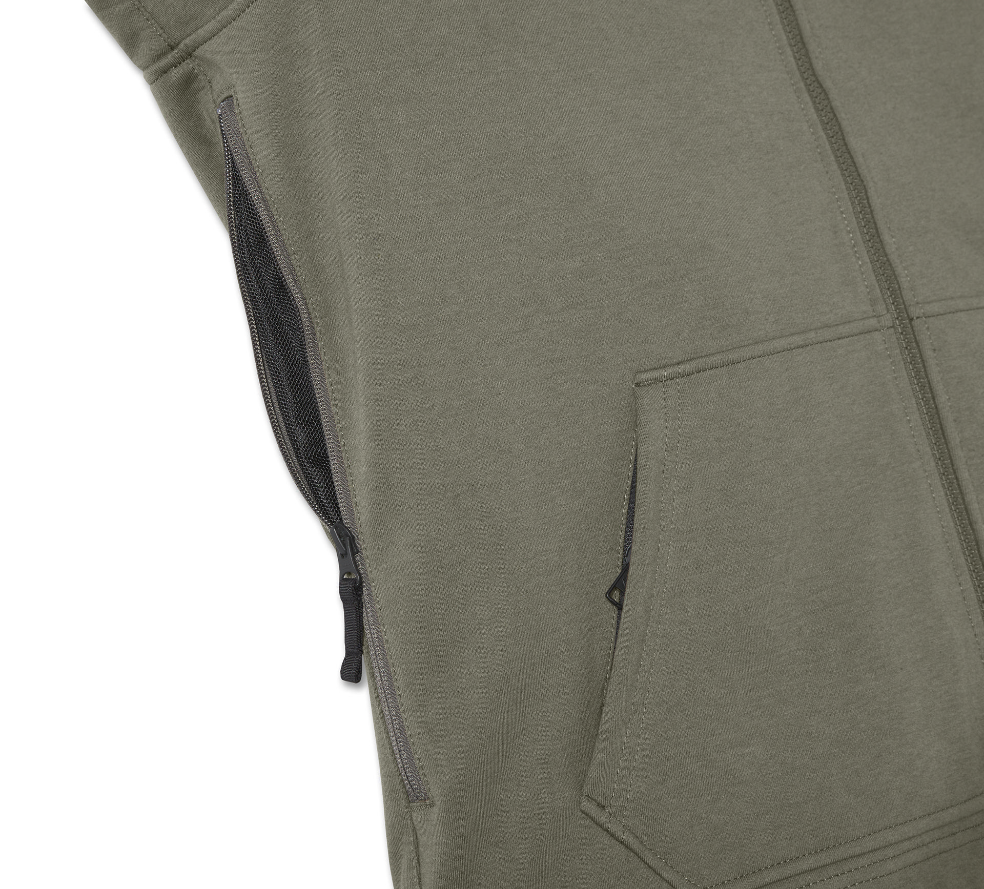 lichaamsventilatie met ritssluiting voor luchtstroom. Gemaakt van winddicht materiaal. Voorgevormde mouwen. Verstelbare capuchon. Materiaal: 66% polyester, 34% katoenFleece. Voering van 100% polyester mesh. Ritssluiting aan de voorkant. Kangoeroe zakken met verborgen ritsvak aan de rechterkant. Bevat EN 1621-1 gecertificeerde D30® Ghost™-protectie op schouders en ellebogen (98104-22VR & 98103-22VR). Rugpantserzak voor lichtgewicht EN 1621-2 gecertificeerd D30 Viper-rugprotector (98105-22VR, apart verkrijgbaar). Slijtvast Biezen van 3M™ Scotchlite™ reflecterend materiaal Casual stijl. Gecertificeerd volgens EN 17092-4:2020.