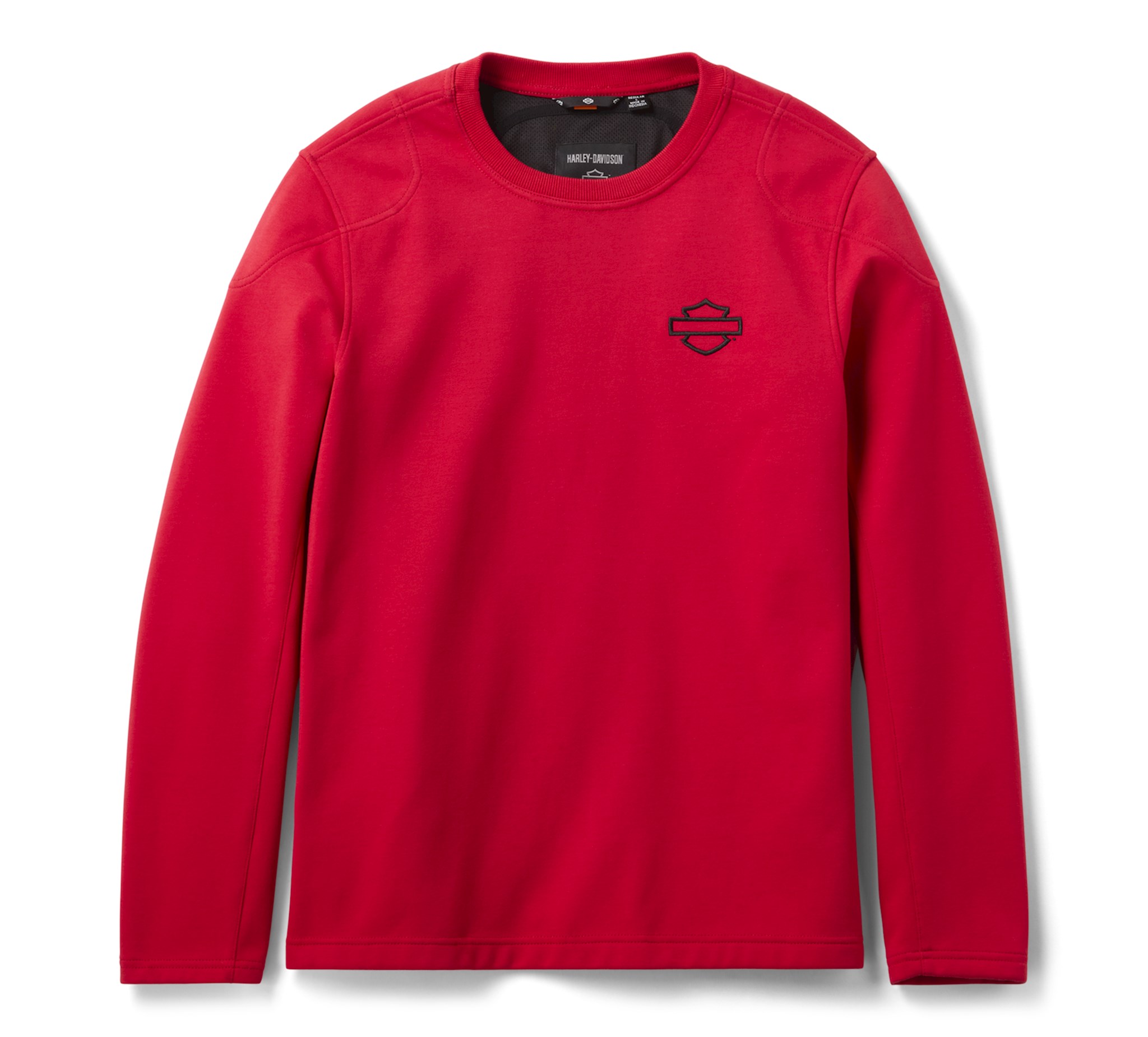 Blijf koel: Ventilatie met ritssluiting aan de zijkant voor luchtstroom. Blijf warm: Gemaakt van winddicht materiaal. Pasvorm & bewegingsvrijheid: Voorgevormde mouwen. Materialen: 63% polyester, 37% katoen zware gelamineerde fleece. Voering van 100% polyester mesh. ZAKKEN: Game-achterzak met ritssluiting. Additional Features: H-D® CE Certified PBM is getest en voldoet aan de eisen voor slijtvastheid, scheurvastheid en naadsterkte. Inclusief EN 1621-1 D3O® Ghost™ protectie op schouders en ellebogen (98104-22VR & 98103-22VR). De rugprotectorzak is voorbereid op EN 1621-2 gecertificeerde D3O® Viper-rugprotector (98317-25VR, apart verkrijgbaar). 3M™ Scotchlite™ reflectiemateriaal. Ontwerpdetails: Casual crew neck-styling. Ribgebreide halslijn. Reflecterende platte bies. Graphics: Directe borduursels. Certification: Gecertificeerd volgens EN 17092-4:2020.