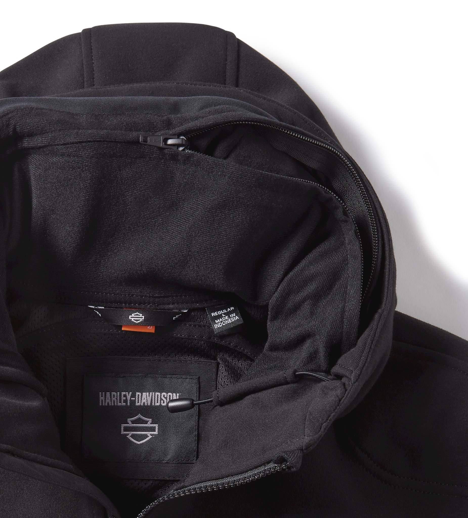 Onze H-D® Trenton Deflector 2.0 Hooded Riding Fleece is een combinatie tussen een casual en functioneel item. Dit nieuwste motorjack voor mannen is getest en gecertificeerd om te voldoen aan de vereisten op het gebied van slijtvastheid, scheuren en naadsterkte. Het beschikt over impactbescherming dankzij onze D3O® Ghost™ protectoren op de schouders en ellebogen. We hebben ook het ventilatiegebied uitgebreid om meer luchtstroom binnen te laten komen, reflecterend materiaal toegevoegd om de zichtbaarheid te vergroten en een veilige zak met ritssluiting aangebracht op de rechterkangoeroezak. Het winddichte jack is gemaakt van een zwaar gebonden materiaal met een ademende mesh-voering en heeft een verstelbare capuchon met trekkoord die je naar beneden kan ritsen om weerstand tijdens het motorrijden te verminderen. Dankzij de afwerking met contrasterende stukken en onze geborduurde branding krijg je met dit jack een modernere, stoere look die geïnspireerd is op de weg. Bekijk hieronder alle specificaties en bestel jouw exemplaar zolang de voorraad strekt...