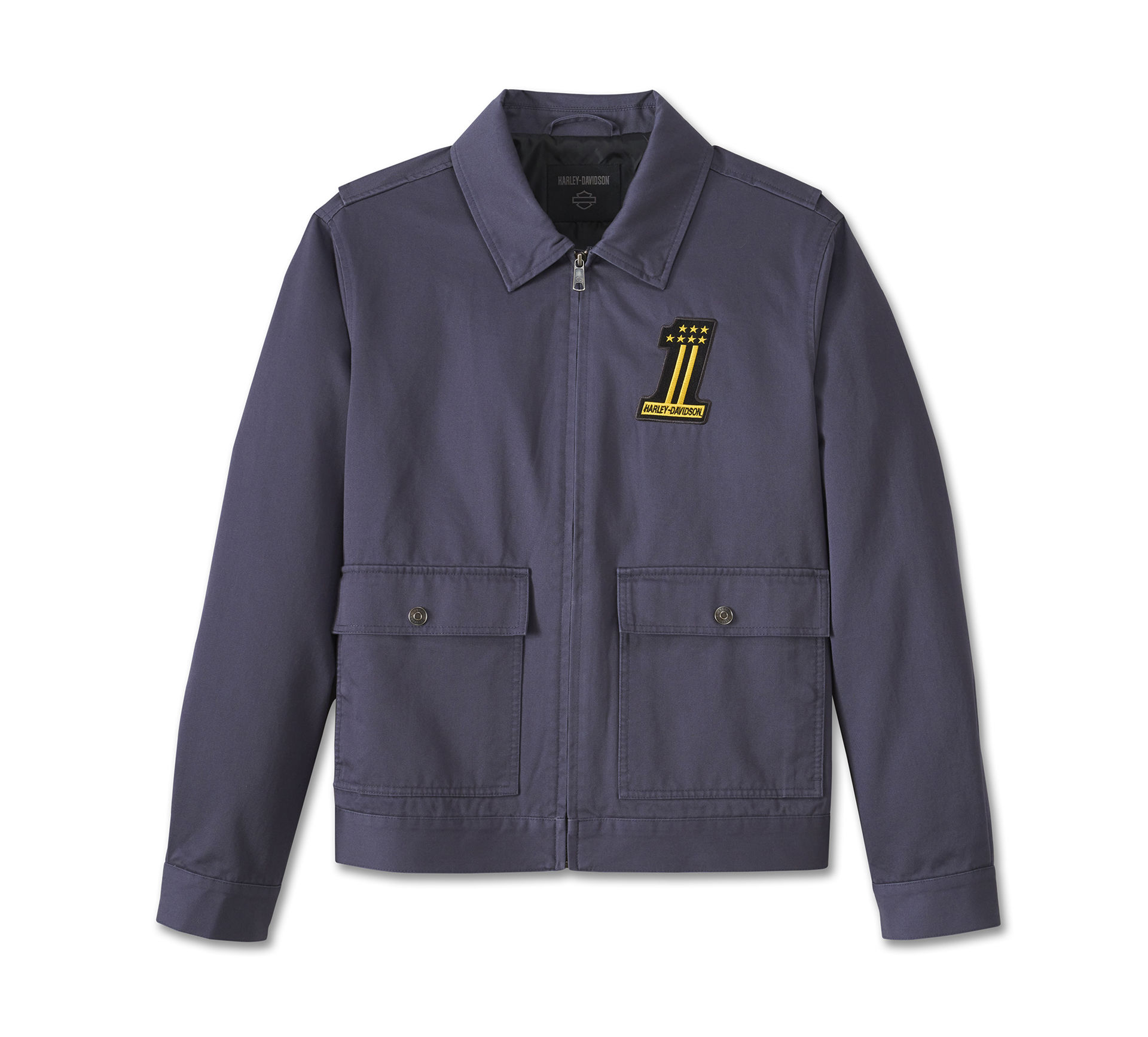 Eer onze winnende flat track-historie in stijl met de Limited-Edition #1 Racer Jacket. Het mechanic-fit silhouet is gemaakt van robuuste, maar ademende, zware katoenen keperstof die is gewassen voor zachtheid. Hij heeft een action back, zakken met dubbele ingang, verborgen drukknopen om je kraag naar beneden te houden en een vleugje reflecterend materiaal in de graphics voor extra zichtbaarheid. Dit mannenjack verdient extra stijlpunten voor het race-geïnspireerde artwork op de voor- en achterkant. Wist je dat het #1-logo hier oorspronkelijk gemaakt is in 1969, om onze AMA Grand National Championship-titel te vieren? Vergeet niet om zo snel mogelijk te bestellen - de voorraad is beperkt.