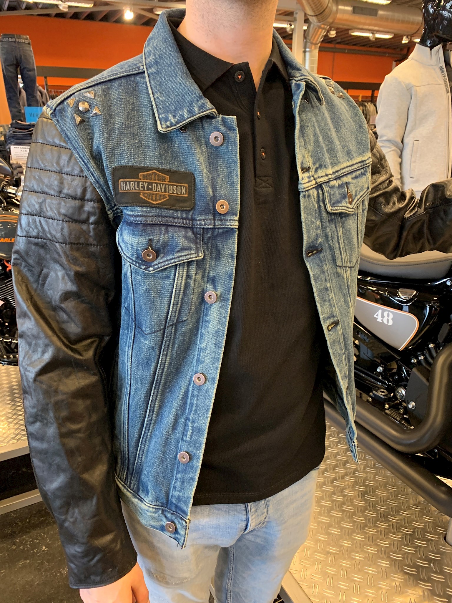 Harley-Davidson® Men's #1 Leather Sleeve Slim Fit Denim Jacket