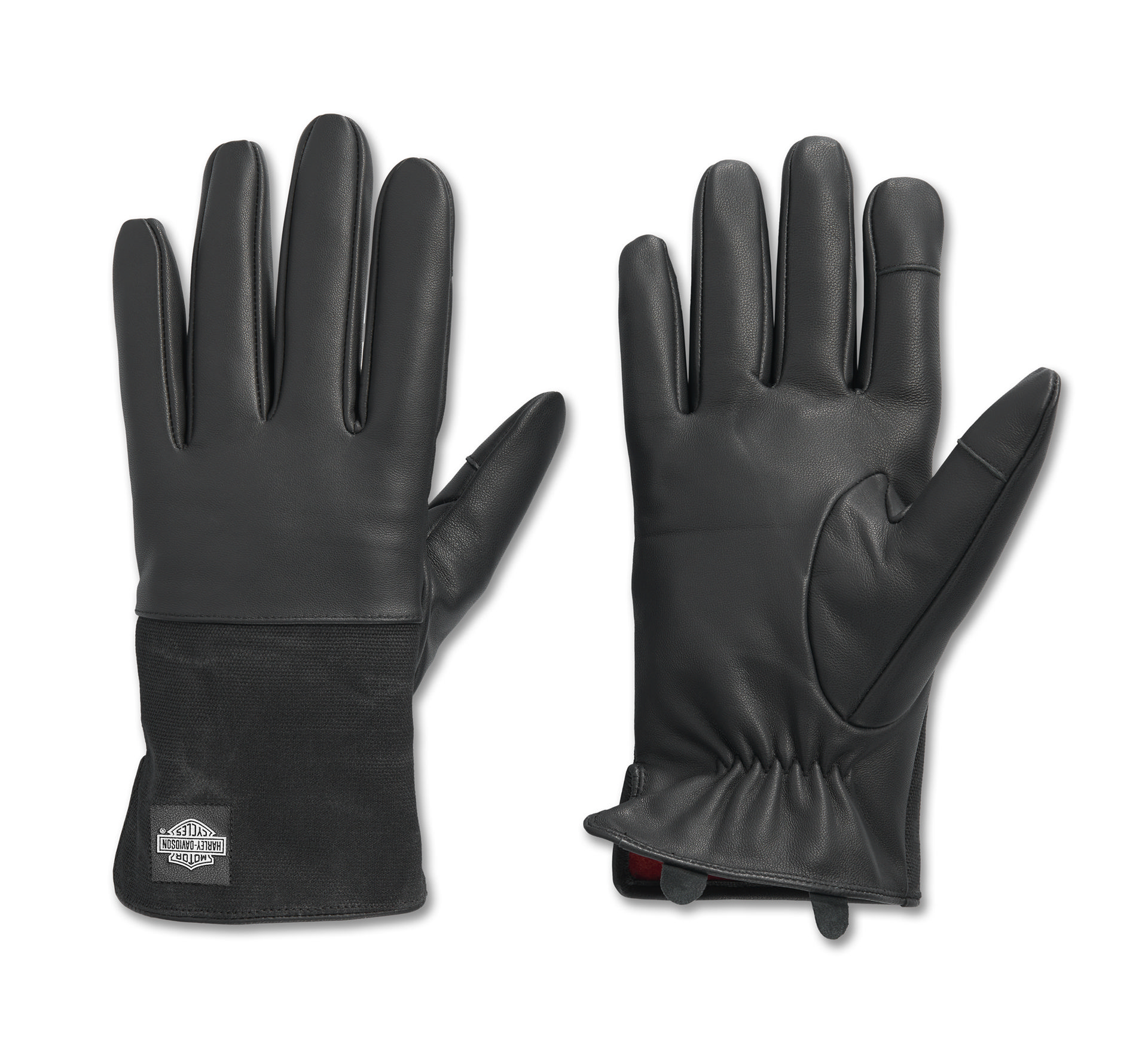 100% midweight lambskin leather. 100% cotton duck canvas, wax coated.