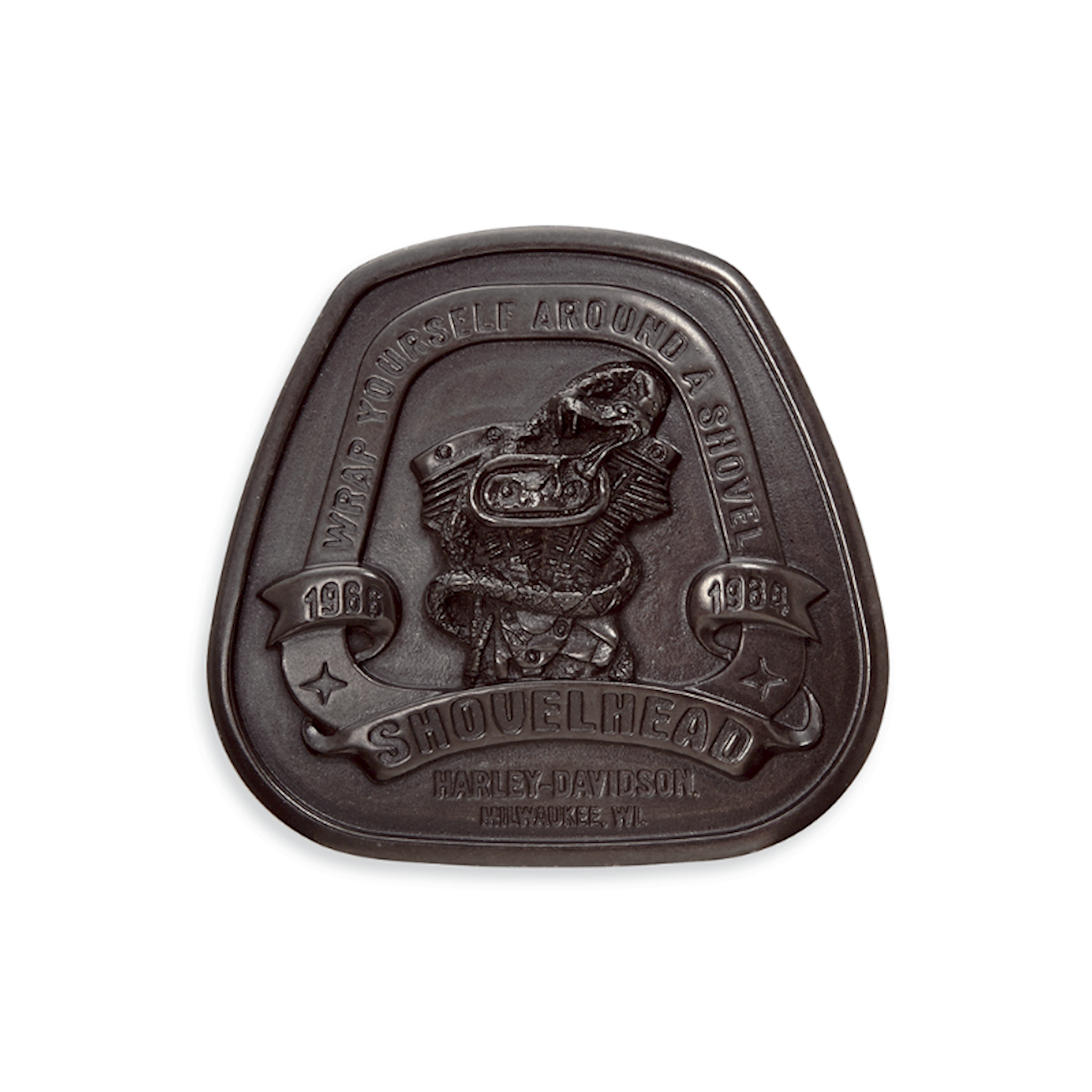 100% zinc alloy with antique pewter finish. Engraved graphics. Fits any 1 ½" strap. Measures 3" wide and 2 7/8" long.