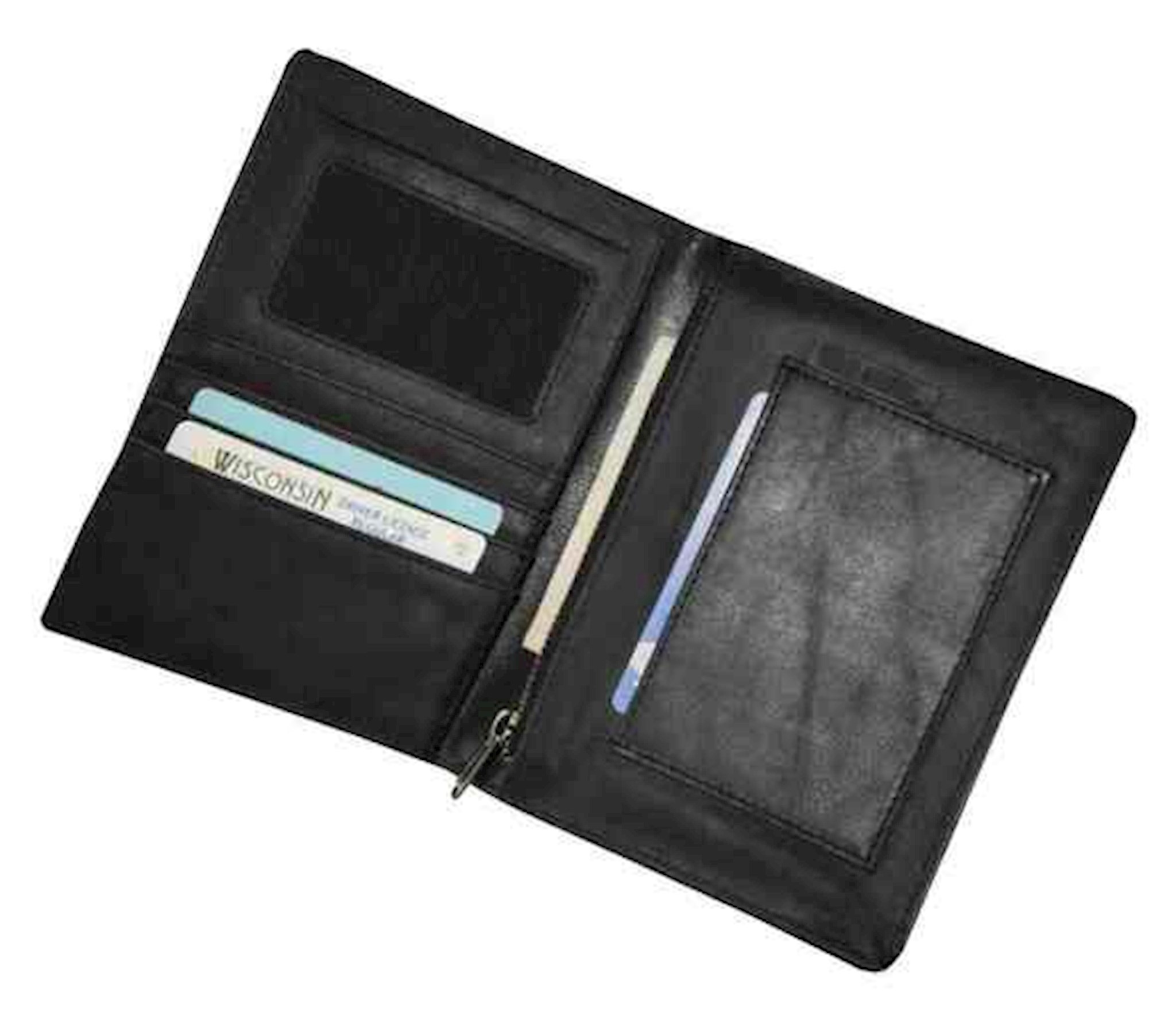 Harley-Davidson® Men's Leather Phone Case Wallet, 97702-16VM. Made of 100% cowhide leather. Back pocket fits most cell phones. Interior features ID window, five card slots, two paper money compartment that fits most currencies when folded, and one zipper interior compartment. Debossed graphics on front and back. Measures: 4.5" x 6".