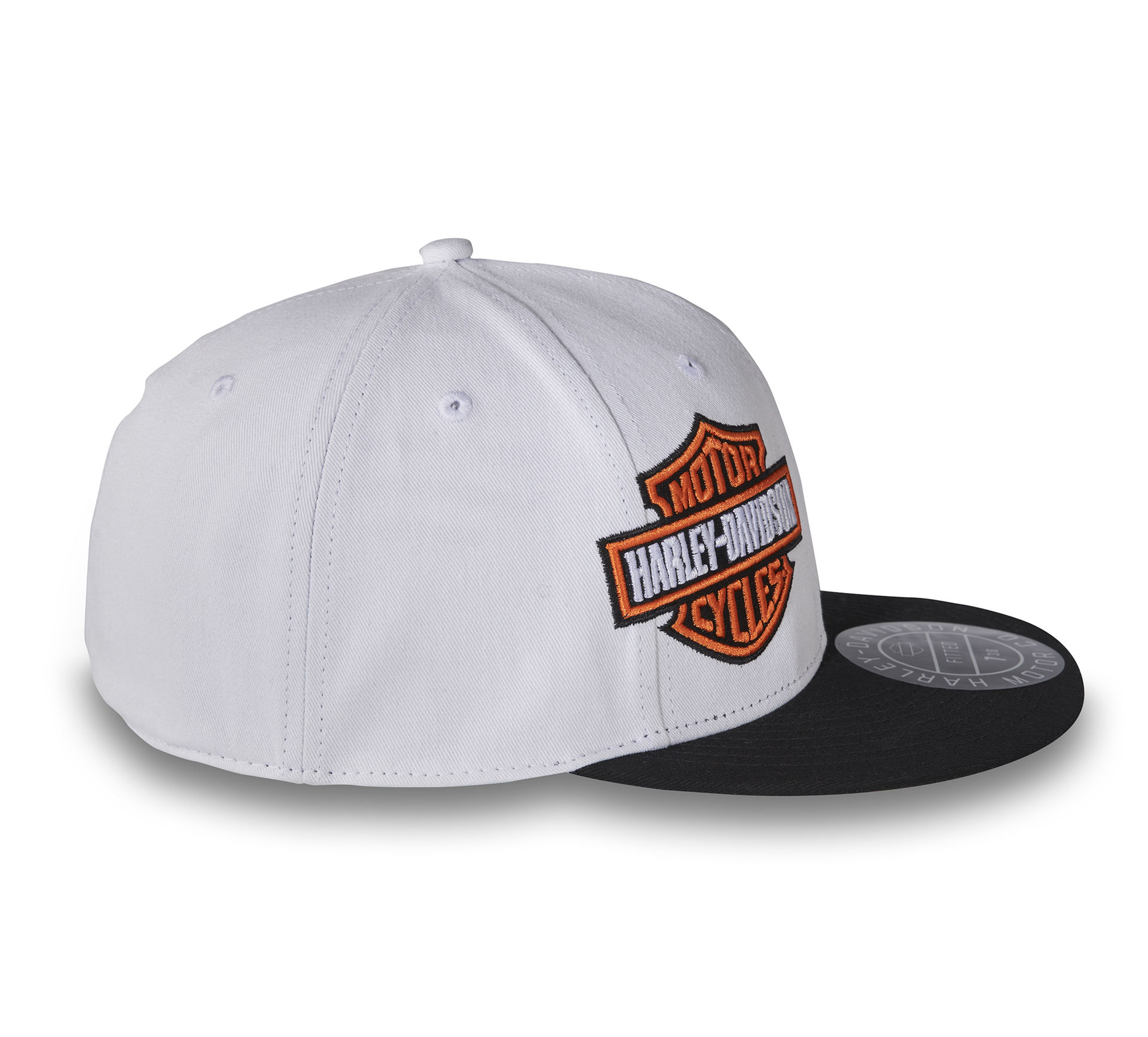 Go bold yet classic in the Highside Fitted Cap. Made breathable + durable from cotton twill with fitted styling that conforms to your head size. Vibrant graphics in raised embroidery wrap around this men’s cap for a unique look that’s unmistakably Harley-Davidson.