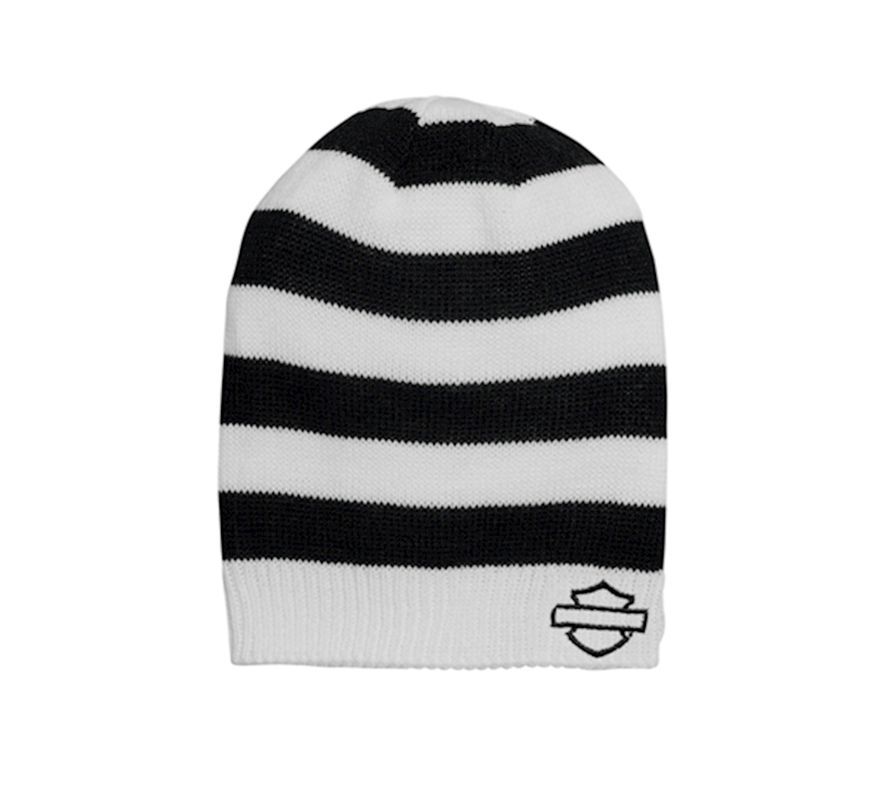 Outline B&S logo on the front. striped black and white. One size fits all. 100% acrylic.