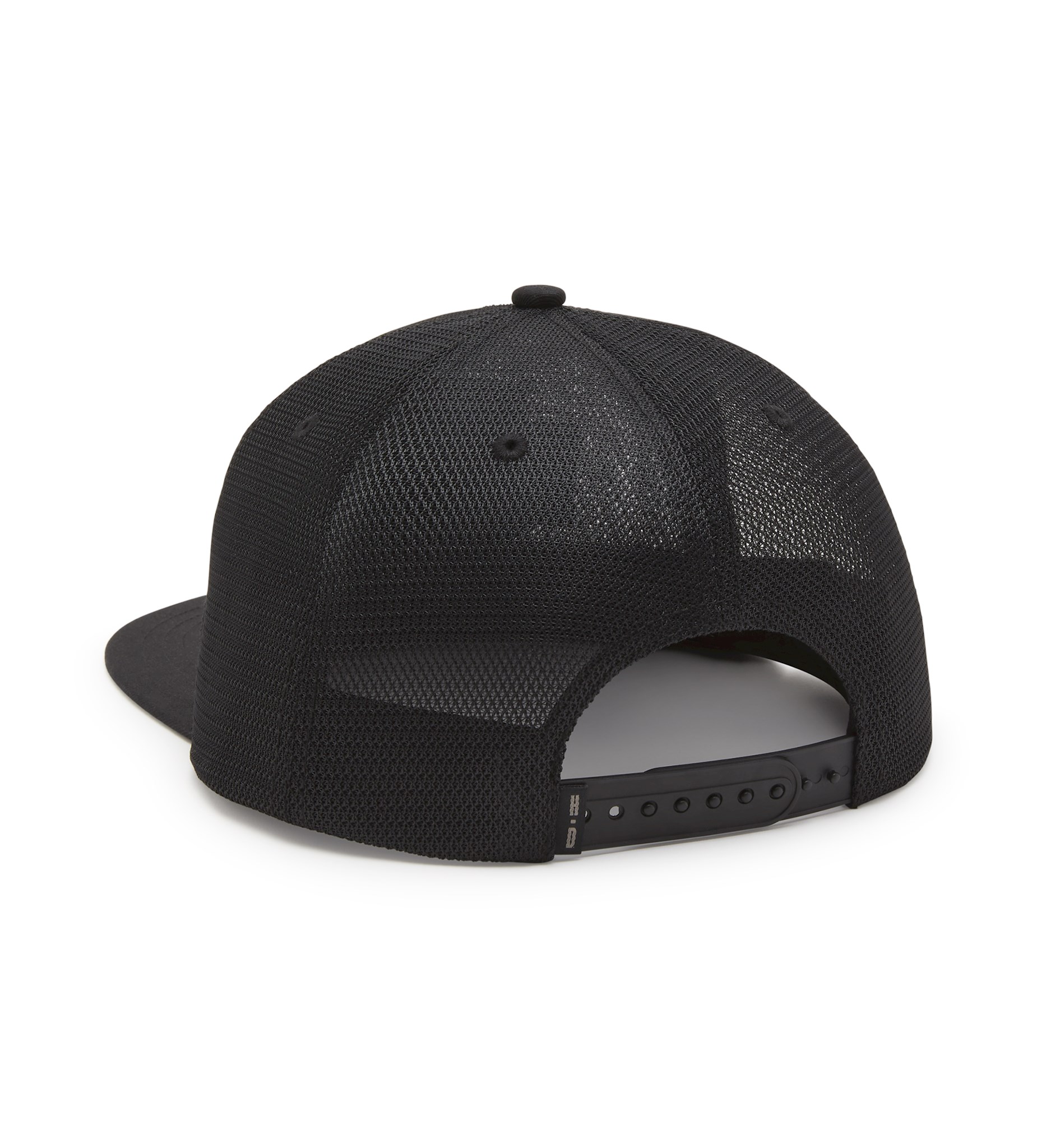 Materials: 100% polyester mesh. • Closure: Adjustable snapback. • Design Details: Contrasting brim material. • Graphics: Embroidered twill patch. Branded woven flag label.