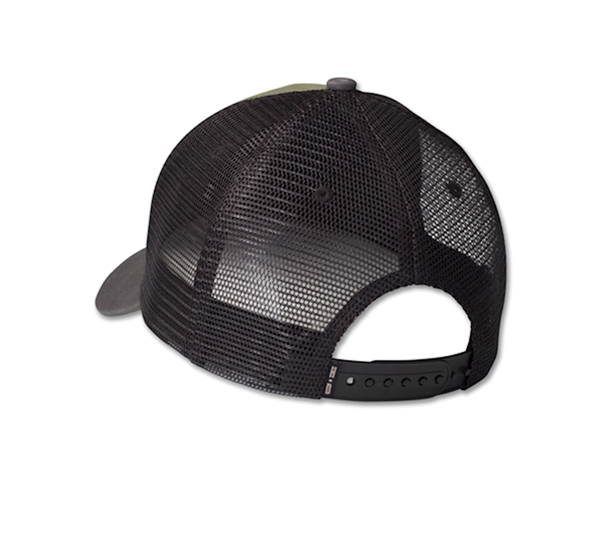 100% cotton twill. 100% polyester mesh. Adjustable snap back.