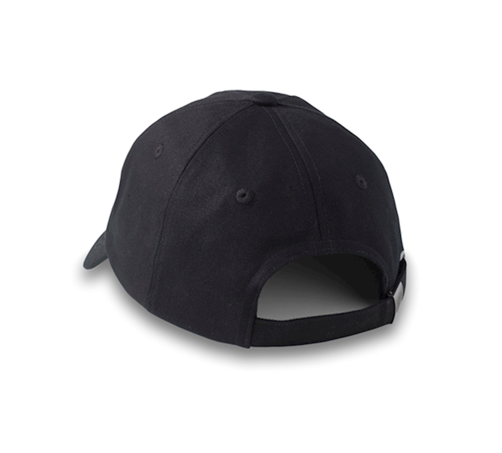 100% cotton twill. Adjustable back with branded metal slider. One size.