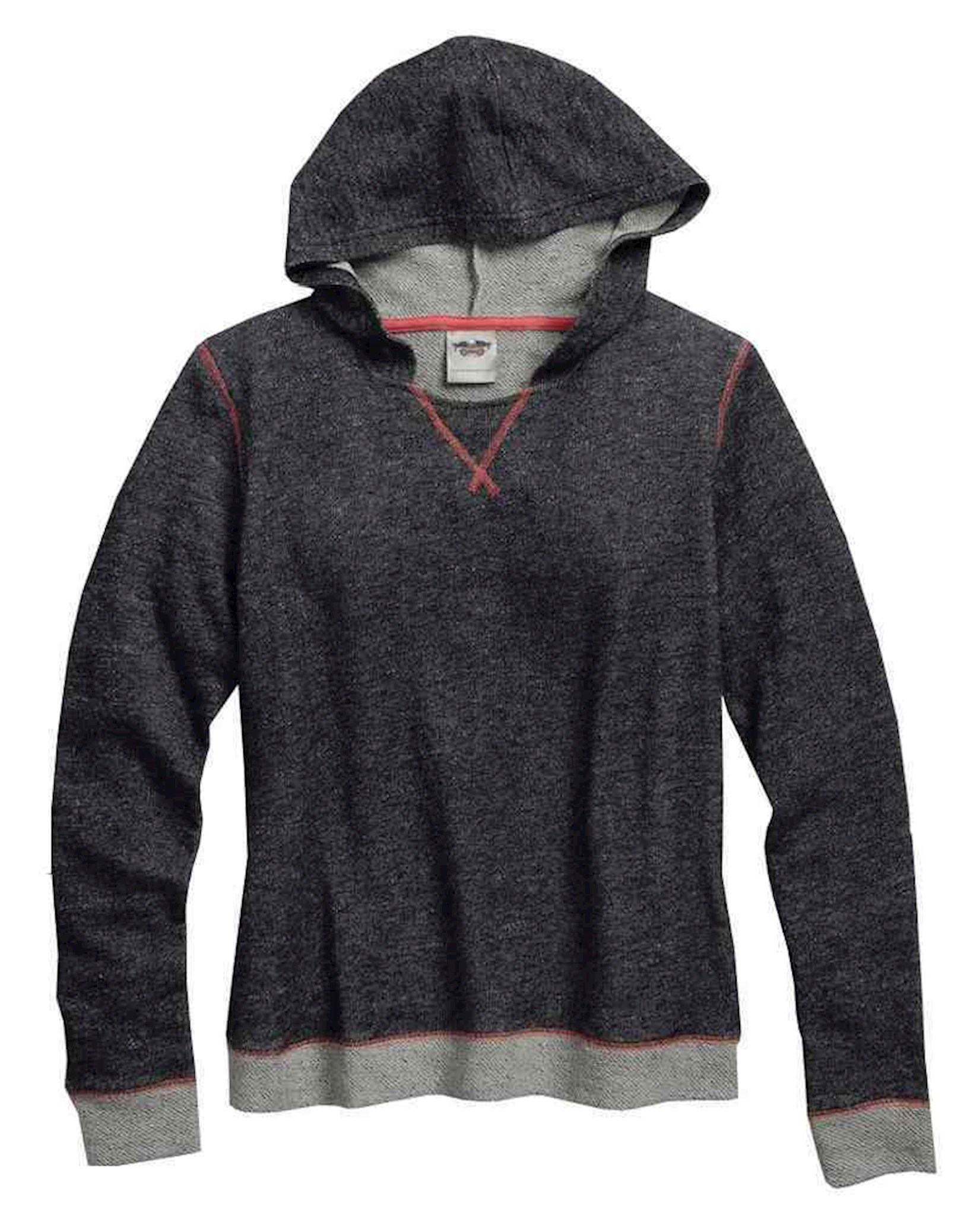 Harley-Davidson® Women's French Terry Sleep Hoodie, 97889-16VW. Made of 60% cotton, 40% polyester two-tone French terry. Pullover style with hood. Contrasting seam stitching. Reversed French terry cuffs and waist. Printed graphics on back. This is one soft, comfy and versatile hoodie.