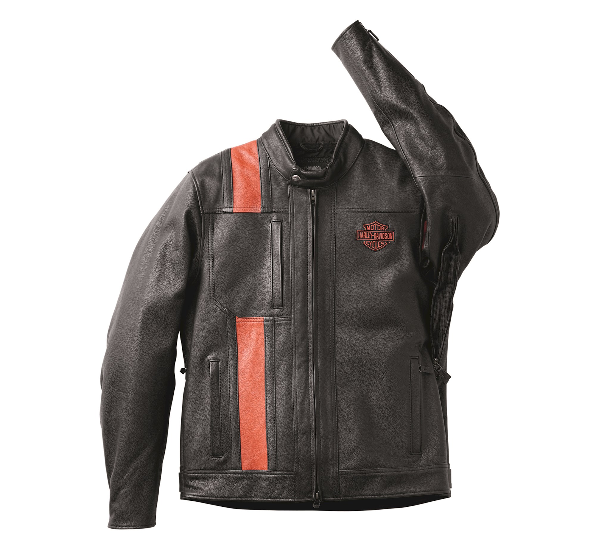 Rain, rain, stay all day - your ride will still stand in our Highway-100 Waterproof Leather Jacket. Its heavyweight cowhide leather construction is water-resistant and seam-sealed with a polyester mesh lining and underarm vents for enhanced breathability. Dynamic back, inner pockets and reflective material for increased visibility. But style reigns supreme too, as this jacket sports a sleek mandarin collar, vertical pockets and vibrant leather trim. Harley style is brought to life in a colorful way with our most iconic logo on the front. For added breathability and shock absorption, equip this jacket with our new D3O Viper armor (sold separately).