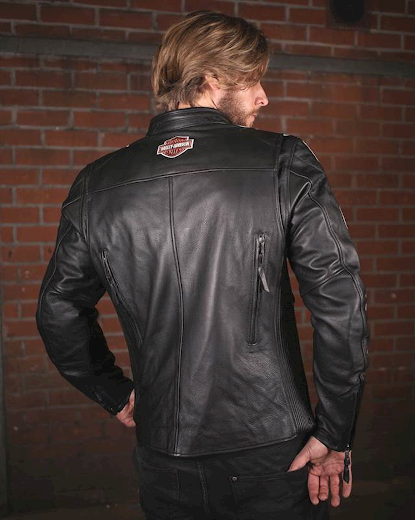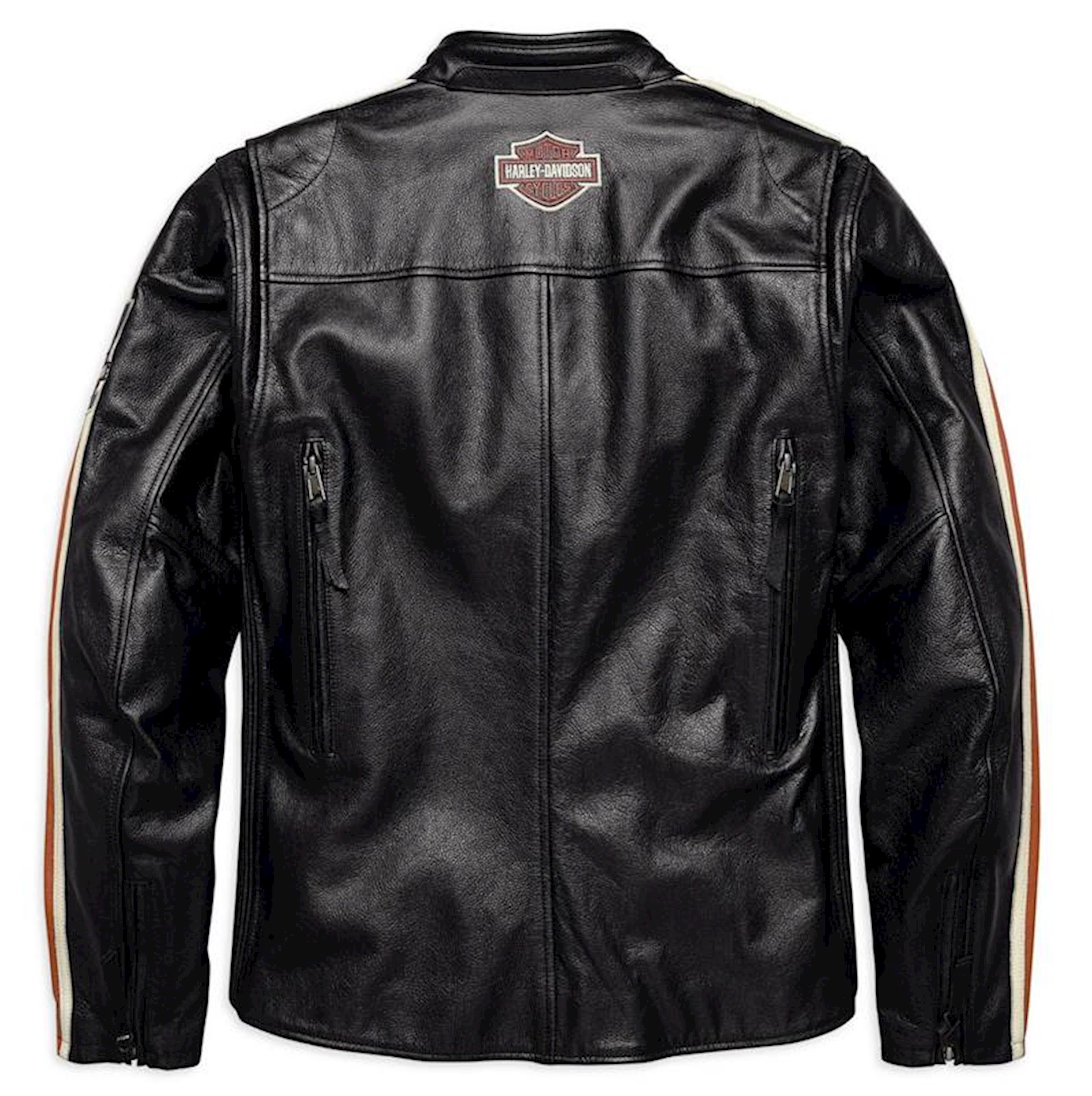 Stay Cool: Two front vents and two back vents. Fit & Mobility: Action back. Pre-curved sleeves. Power-stretch side panels. Classic Fit is cut looser to be more comfortable and relaxed on the body. Ride-Enhancing Features: EN 1621-1 CE-approved removable body armor at elbows and shoulders. Back body armor pocket fits CE Level 1 Back Armor (98150-17VR, sold separately). Two-way zipper front. Zipper cuffs. Pockets: Zipper hand-warmer pockets. One interior stash pocket and one interior zipper pocket. Design Details: Leather appliqué graphics and embroidered graphics. Materials: Midweight abrasion-resistant cowhide leather. Polyester mesh lining. Certifications: Meets or exceeds CE requirements in abrasion resistance, impact testing, and seam bursting for personal protective clothing.