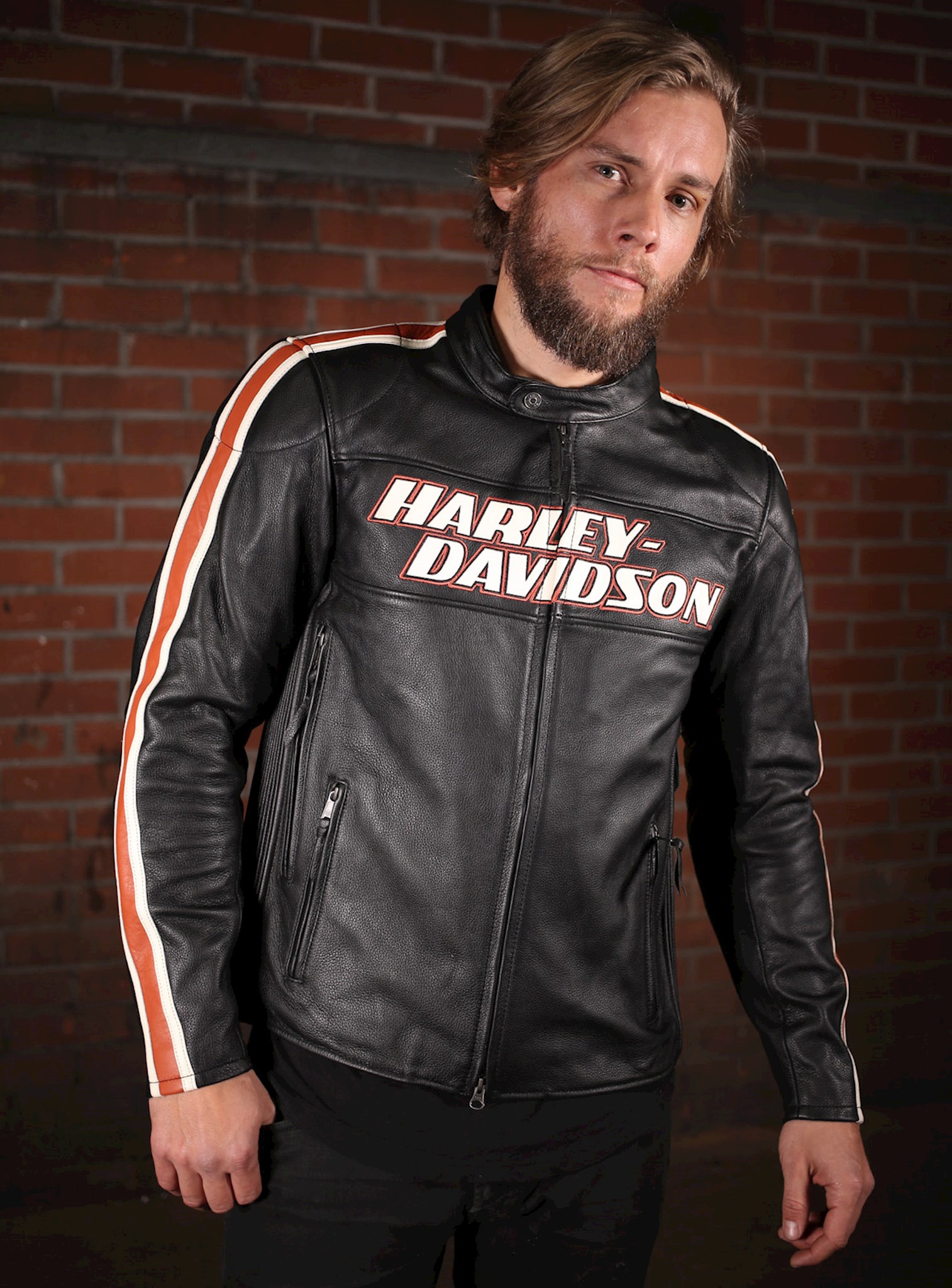 Stay Cool: Two front vents and two back vents. Fit & Mobility: Action back. Pre-curved sleeves. Power-stretch side panels. Classic Fit is cut looser to be more comfortable and relaxed on the body. Ride-Enhancing Features: EN 1621-1 CE-approved removable body armor at elbows and shoulders. Back body armor pocket fits CE Level 1 Back Armor (98150-17VR, sold separately). Two-way zipper front. Zipper cuffs. Pockets: Zipper hand-warmer pockets. One interior stash pocket and one interior zipper pocket. Design Details: Leather appliqué graphics and embroidered graphics. Materials: Midweight abrasion-resistant cowhide leather. Polyester mesh lining. Certifications: Meets or exceeds CE requirements in abrasion resistance, impact testing, and seam bursting for personal protective clothing.