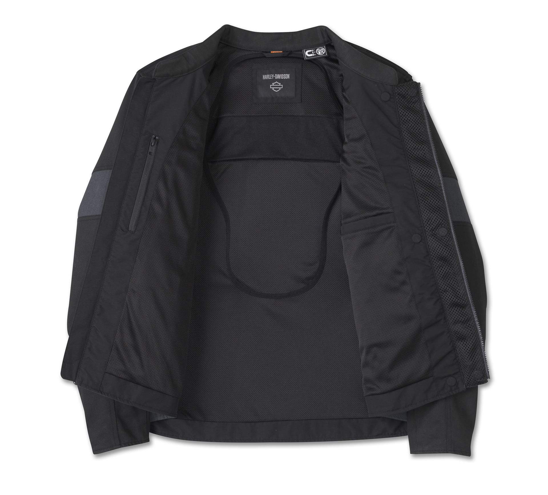 Verbeter jouw rijervaring in stijl en zonder in te leveren op bescherming met ons Limited-Edition Willie G Skull Graphic Triple Vent System 2.0 Textile motorjack. Het verbeterde ontwerp is nu voorzien van een 4-way stretch action back dat met je meebeweegt op de weg en superieure lichtgewicht impactbescherming dankzij de D3O Ghost-protectie in de ellebogen en schouders. Reflecterend materiaal zorgt voor extra zichtbaarheid en je geniet van extra ventilatie dankzij ons verbeterde Triple Vent System 2.0. Dit systeem heeft drie strategisch geplaatste ventilatieopeningen, een luchtstroomomleider onder de armen en een opklapbare ritsverlenging aan de voorkant, allemaal ontworpen om de luchtstroom drastisch te verbeteren, zelfs op motorfietsen met kuip en windscherm. Dit motorjack voor heren is stijlvol afgewerkt met contrasterende stoffen en graphics die de iconische creatieve erfenis van Willie G eren. Ken jouw geschiedenis: naast de geliefde Skull ontwierp Willie G. Davidson ook verschillende motorfietsen, waaronder de FX Super Glide uit 1971 en de FXS Low Rider uit 1977. Bekijk hieronder alle specificaties en bestel nu voordat het te laat is.