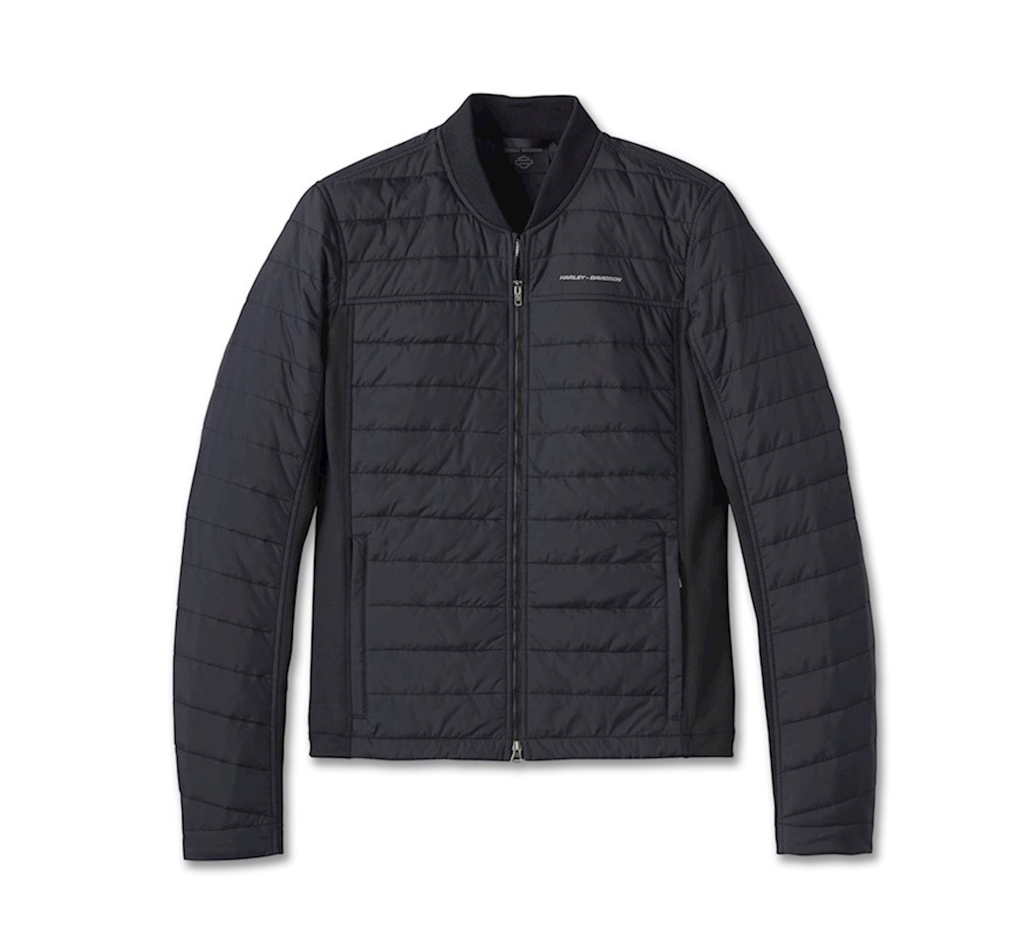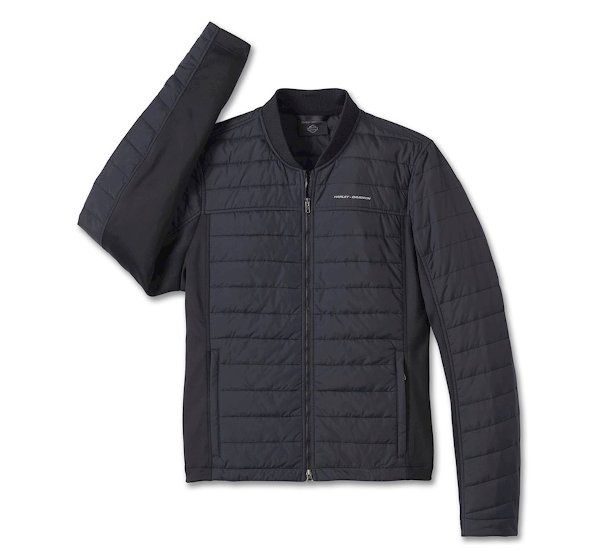 Stay warm without adding bulk in our H-D Layering System Lightweight Mid Layer. It’s layer two in our 1-2-3 modular line that gives you interchangeable protection and style options for riding. This poly filled mid layer has a durable hybrid build with fleece underarms and side panels to keep you toasty. Its quilted styling looks great as a stand-alone, plus it features reflective material for added visibility and a convenient packable pocket bag.
