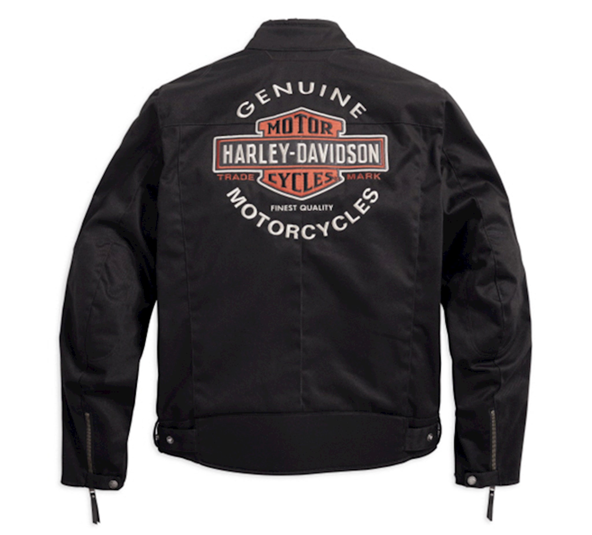 A lightweight, breathable option to leather with great protection. Abrasion-resistant 60% cotton, 40% polyester serica PU with EN 1621-1 CE-approved removable body armor at elbows and shoulders. Back body armor pockets let you add additional protection (CE Level 1 back armor 98150-17VR, sold separately). Perfect for year-round riding, with removable liner. Water-resistant and breathable membrane keeps you cool. Meets or exceeds EN 13595 requirements in abrasion resistance, impact testing, and seam bursting for CE-certified personal protective clothing. SIZING IS VERY CLOSE FITTING - PLEASE CHOOSE ONE SIZE LARGER THAN TRADITIONAL H-D SIZING.