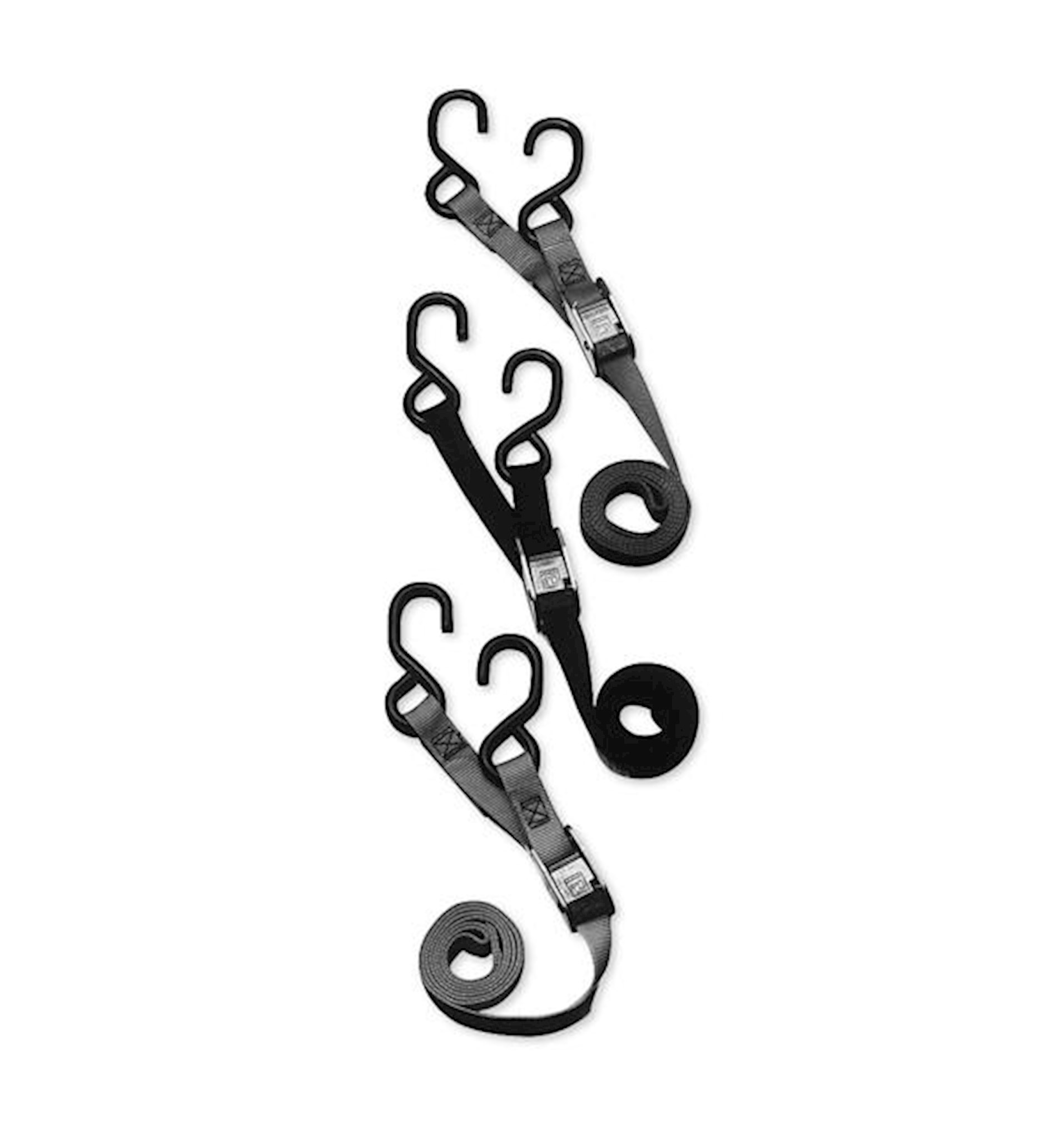 400 lbs Working Load - 1" x 66"The original cam buckle strap for motorcycles allows quick and easy securing of the vehicle for transport. Straps feature 4,500 lbs abrasion resistant Nylon webbing, full size vinyl coated "S" hooks on both ends and an added pressure plate in the buckle to provide superior grip on the webbing. Sold in pairs.