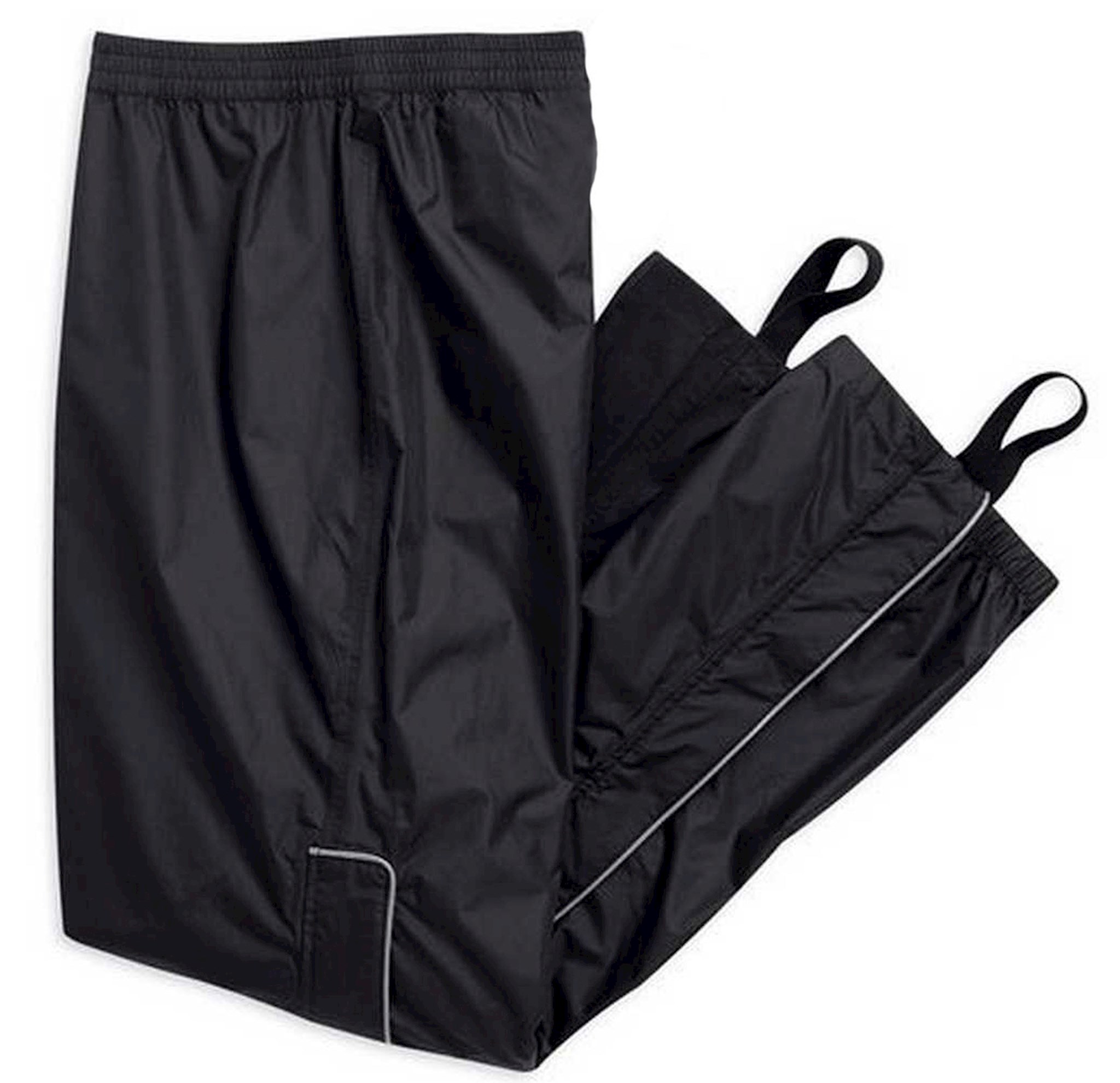 Harley-Davidson® Men's Full Speed Reflective Rainsuit, Black/Gray. 98336-15VM. Be prepared for any change in the forecast with the Full Speed Reflective Rainsuit. Besides waterproofness, one of the key features in a quality suit is reflective material. We also incorporate essential features like pockets and a fold-under hood. More important callouts are listed in the bullets. Jacket features waterproof 100% nylon ripstop with polyester mesh lining. Bungee cord and toggle hood folds under the mock neck collar. Two-way zipper front with hook-and-loop storm flap. Elastic cuffs with adjustable tabs with bungee cord and toggle hem. Two zipper hand-warmer pockets. and one zipper vertical interior pocket. 3M Scotchlite Reflective Material piping, stripes, and graphics. Pants feature waterproof 100% nylon ripstop, elastic waist, heat-resistant shields on lower inner legs, stirrups, leg side zipper to knee, and 3M Scotchlite Reflective Material piping. Storage bag included.