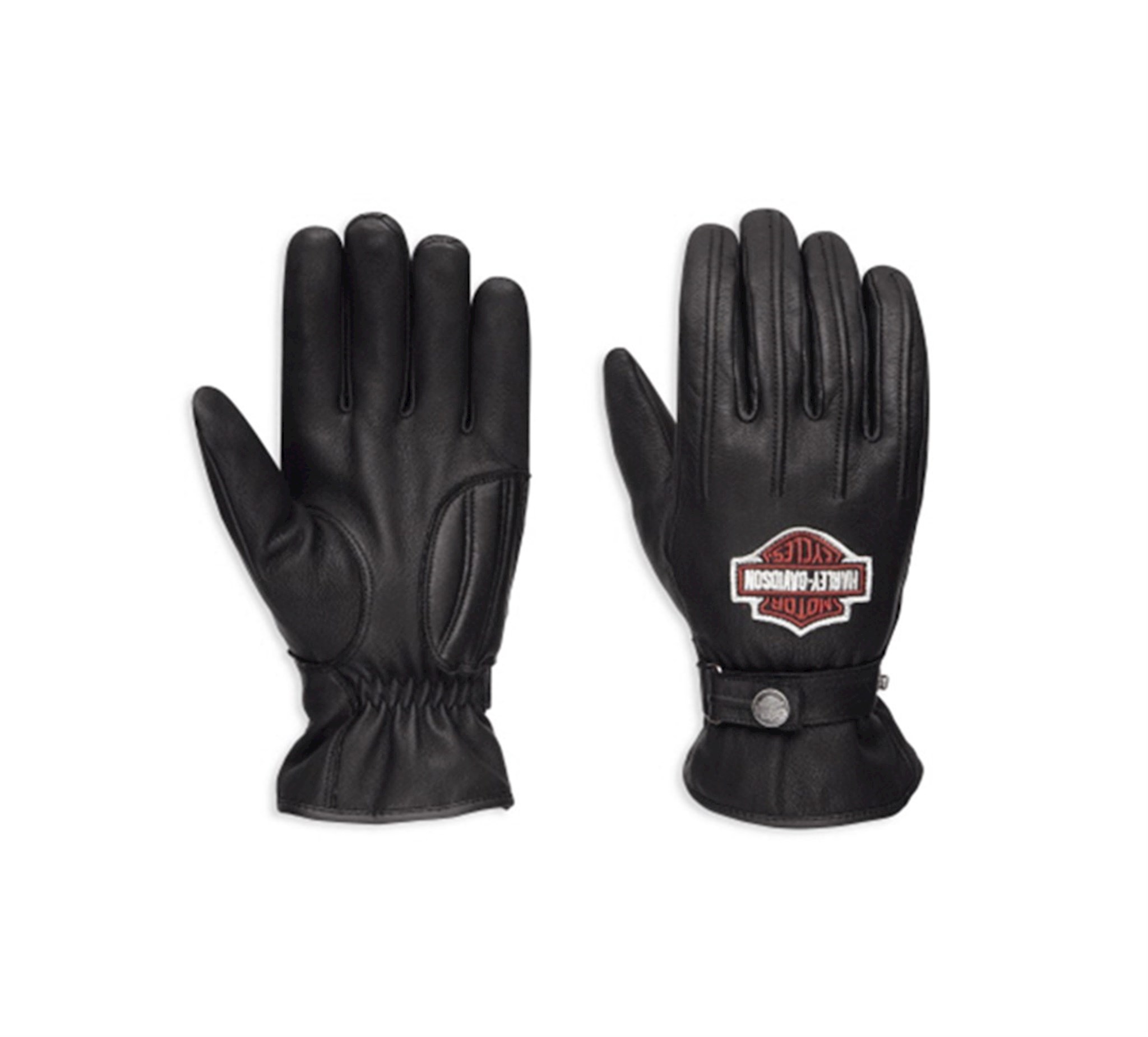 Harley-Davidson® Men's Enthusiast Leather Gloves. The ideal riding glove, made of soft, yet durable, goatskin leather with water-resistant and breathable insert. Ergonomic thumb and pre-curved fingers give you a natural fit and freedom of movement to control your ride. Reinforced goatskin leather palm for extra protection. Meets or exceeds EN 13594 requirements for CE-certified personal protective clothing.
