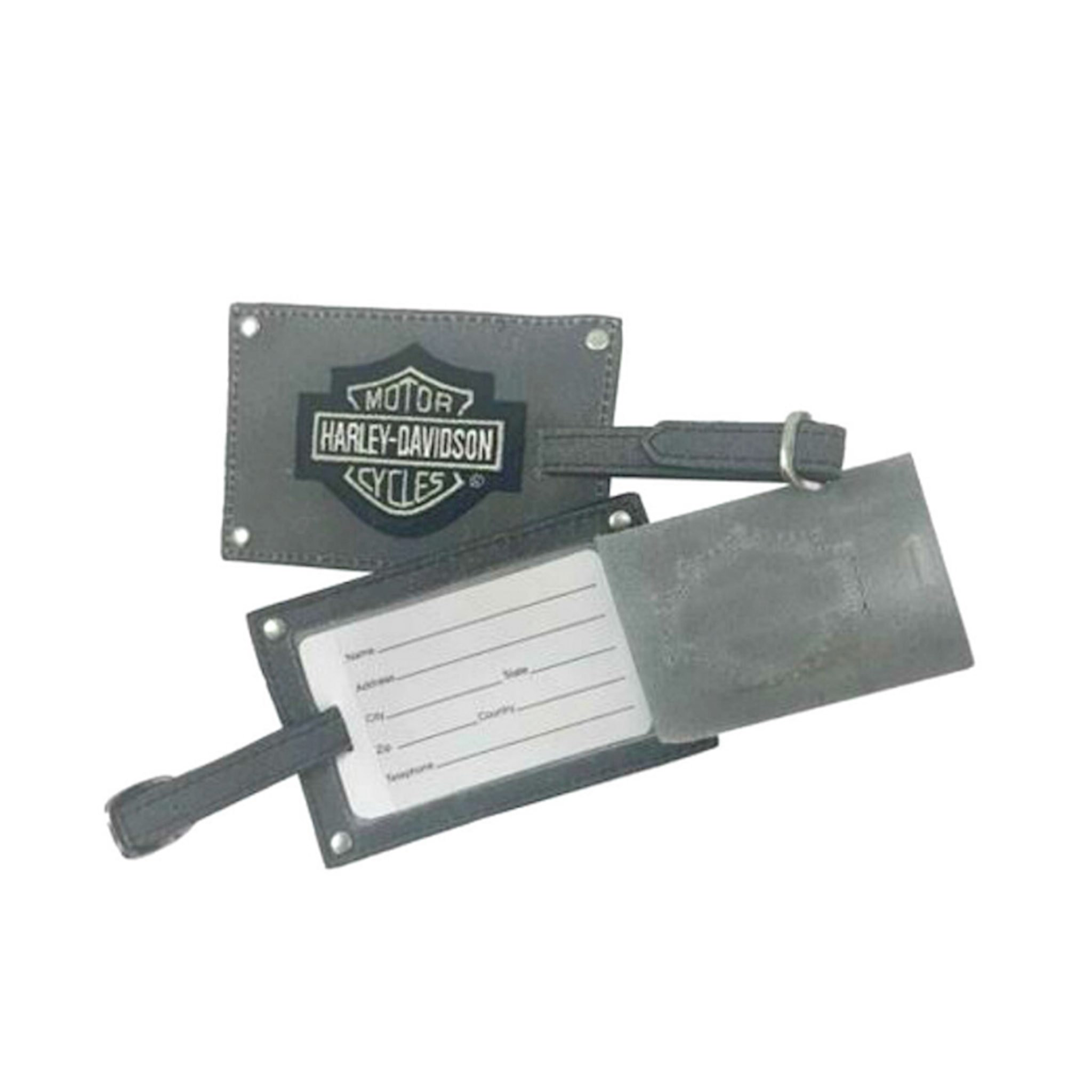 Harley-Davidson® Grey Leather Luggage Tags, Privacy Flap, Set of Two