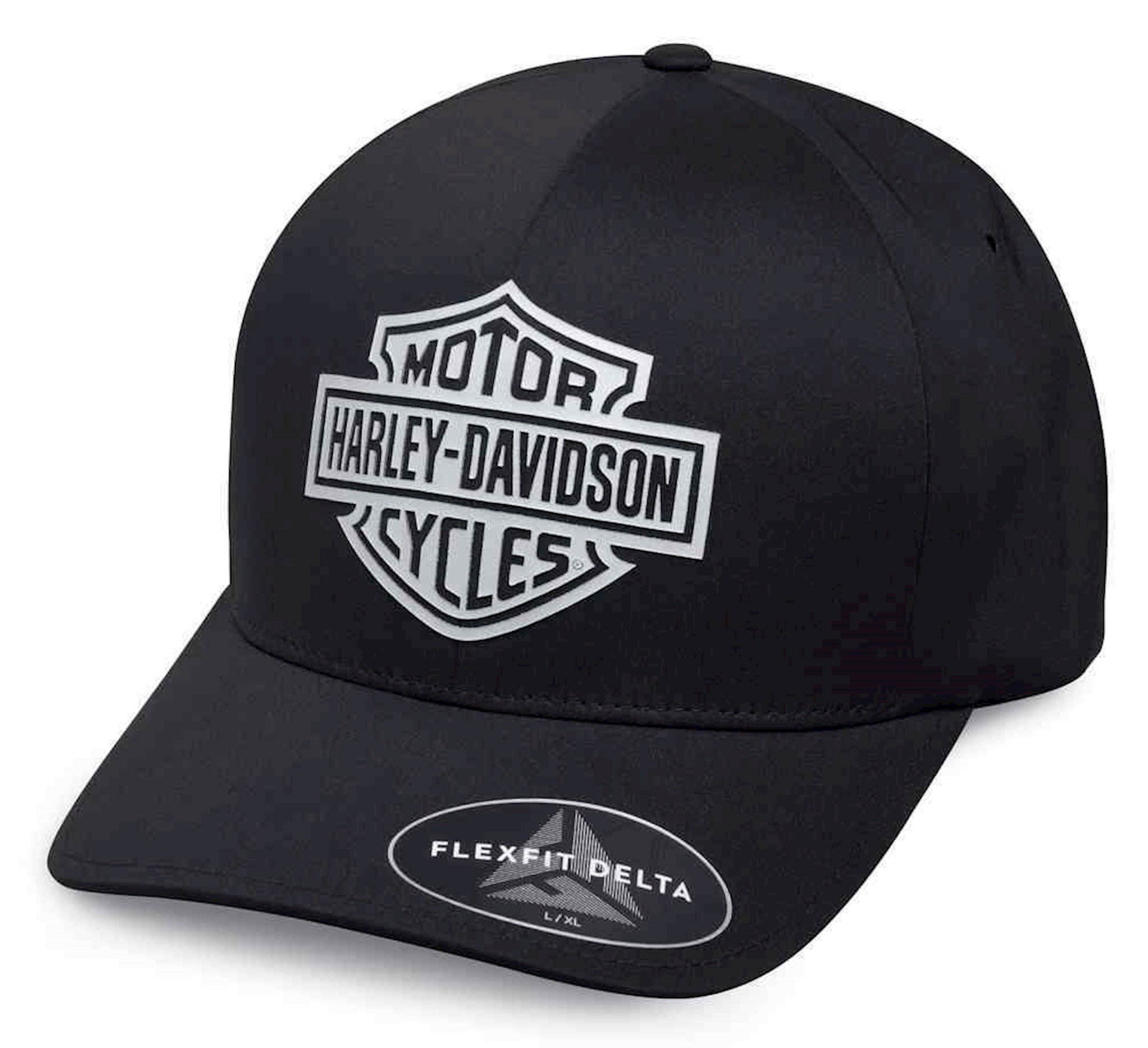 Harley-Davidson® Men's Performance Logo Baseball Cap w/ Delta Technology, 99457-17VM. Made of water-resistant 92% polyester and 8% spandex. Lighter, sleeker design and construction with reduced stitching. Thermal regulating, antibacterial inner seam tape. Quick dry inner sweat band. Stain block technology diffuses sweat through the under visor preventing sweat stains on the cap's crown. Silicon graphics on front and back. Comfortable stretch fit. High-tech hat, engineered with seam-sealing technology, a cloud cushioned 3-Layer sweatband, and Flex-fit bond taping which features antibacterial, thermal-regulating and odor-resistant properties.
