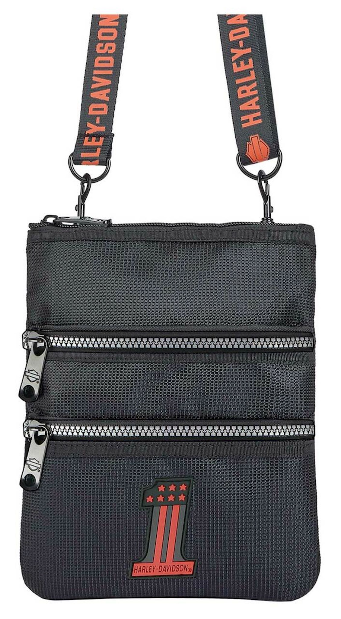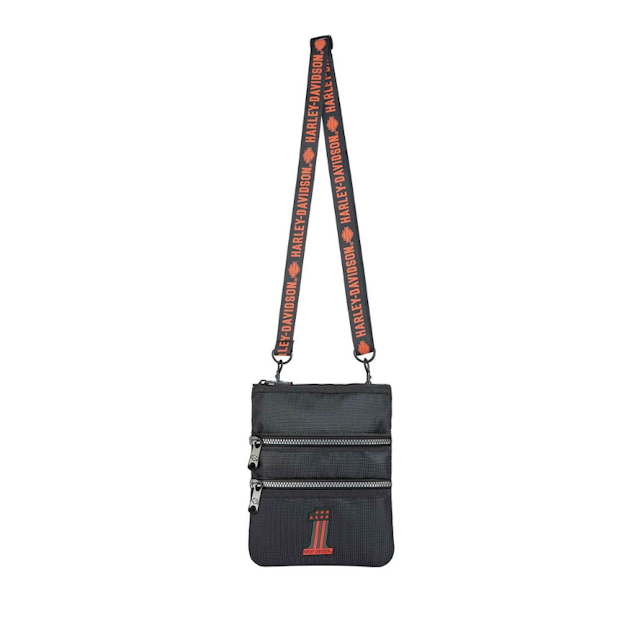 Harley-Davidson® Women's #1 Logo X-Body Crossbody Sling Purse 99616-RUST. Pockets include two secure front zippered pockets and zippered top pocket. Made of strong water-resistant polyester. Both casual and functional, this crossbody gives you plenty of room for all of your must-haves with the bonus of a convenient adjustable/detachable strap. Strap drop 14" and expands to 47". Decorated with a rubber logo detailing on front. Size: 9.5" L x 7.5" H.