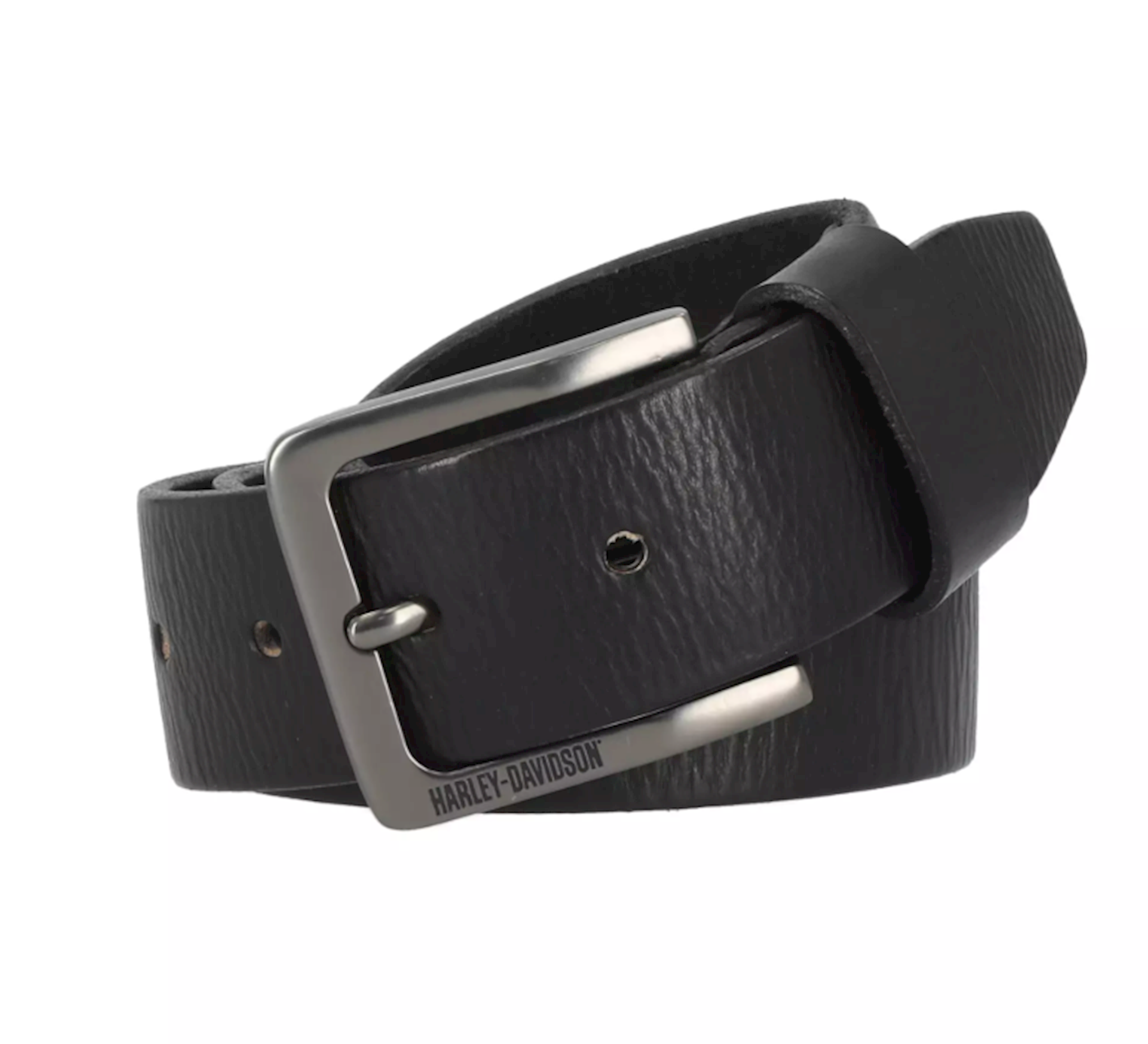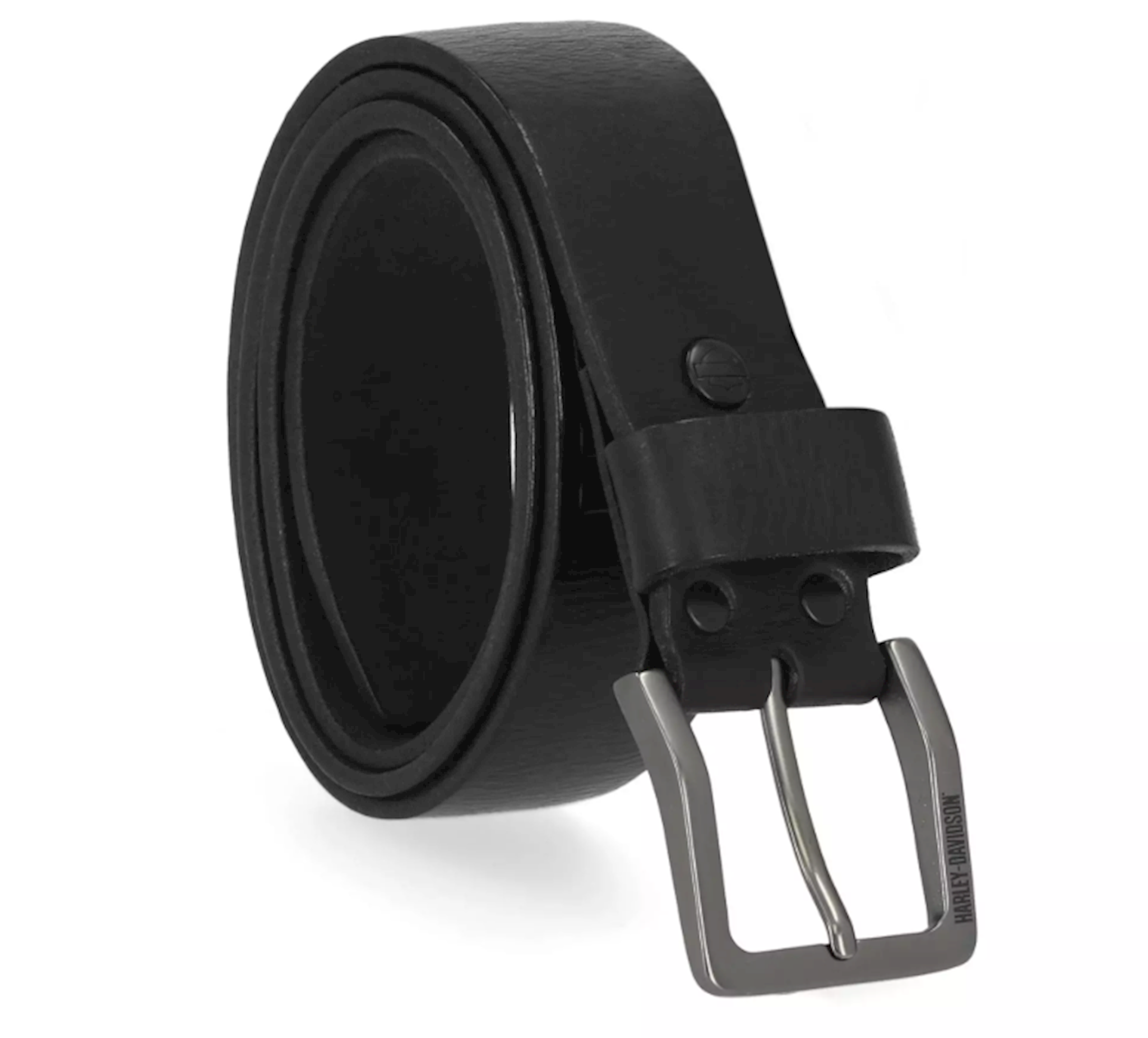100% genuine leather belt. Matte nickel finish buckle with harley-davidson® logo. 38mm wide. Embossed oversized harley-davidson® logo. Interchangeable buckle.