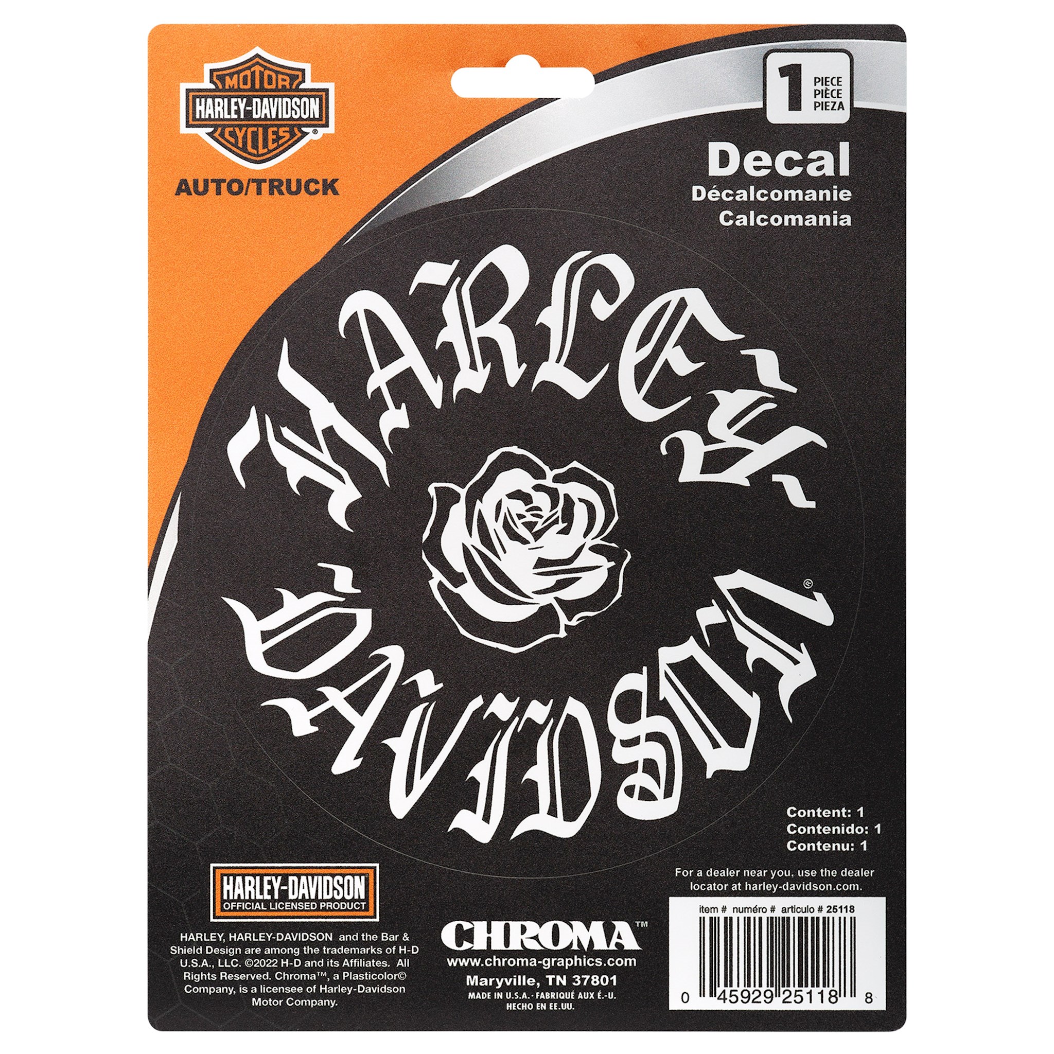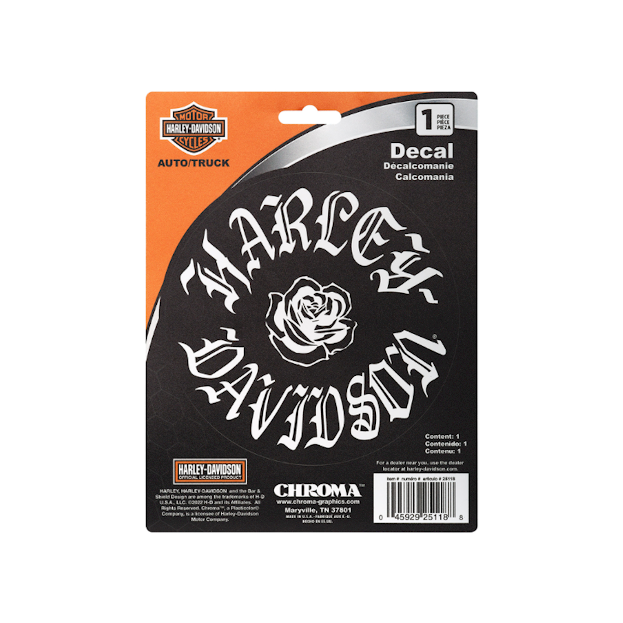 Harley-Davidson® H-D Text with White Rose 15x20 Decal