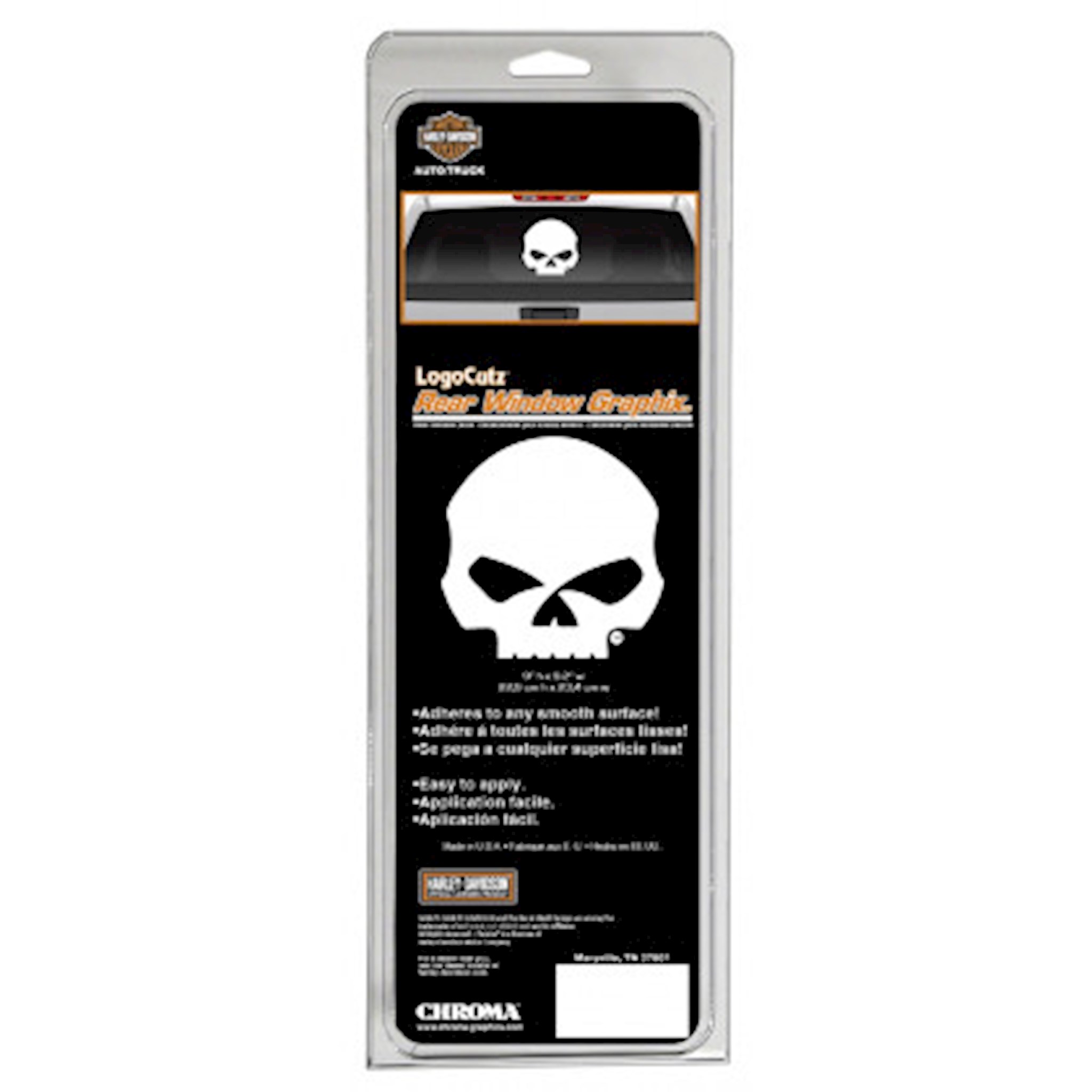 Harley-Davidson® White Willie G Skull Die Cutz Window Decal. Adheres to any smooth surface. Easy to apply! Great for the rear window of your truck!