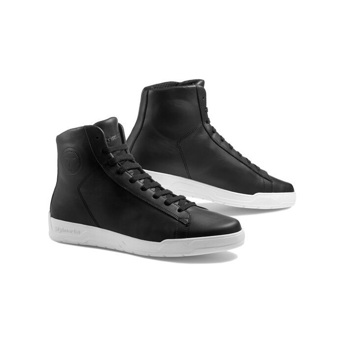 The Core WP was inspired to college basketball attire, a sneaker with a basic line, shape and colors. It easily combines a metropolitan look and the world of two-wheels. The full-grain leather upper, waterproof and breathable lining with, mesh collar is only a few of the fine details. The sole is available in either full-black or full-white and the laces are also interchangeable (black and white).