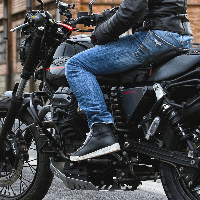 The Core WP was inspired to college basketball attire, a sneaker with a basic line, shape and colors. It easily combines a metropolitan look and the world of two-wheels. The full-grain leather upper, waterproof and breathable lining with, mesh collar is only a few of the fine details. The sole is available in either full-black or full-white and the laces are also interchangeable (black and white).