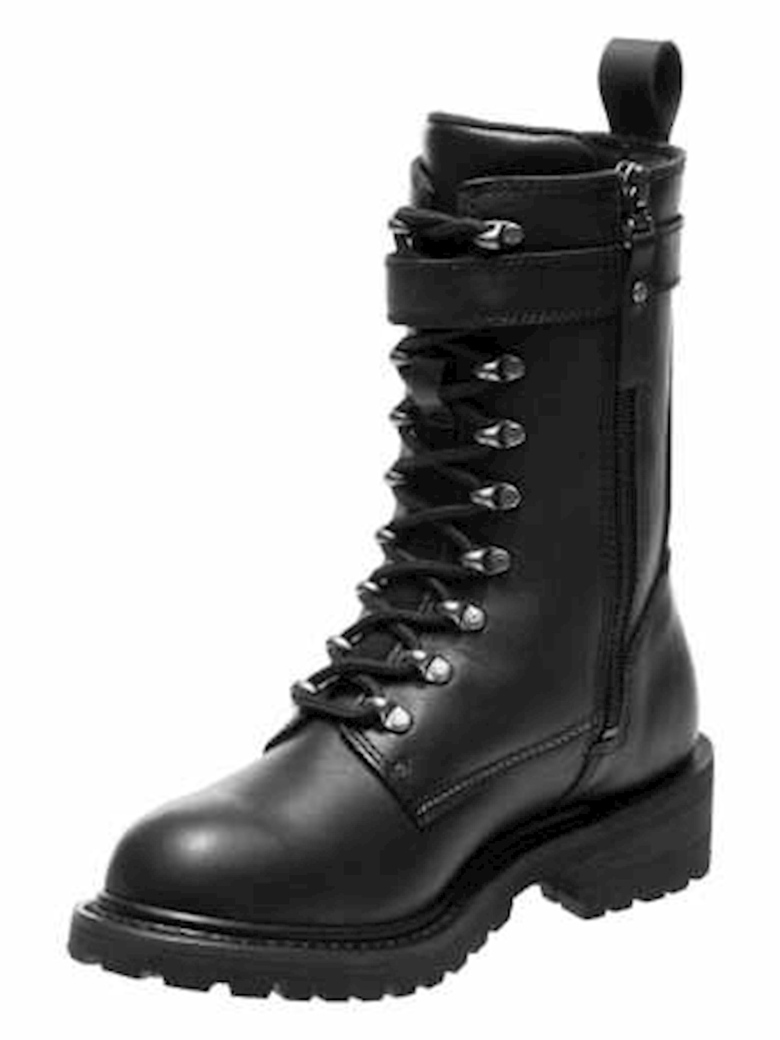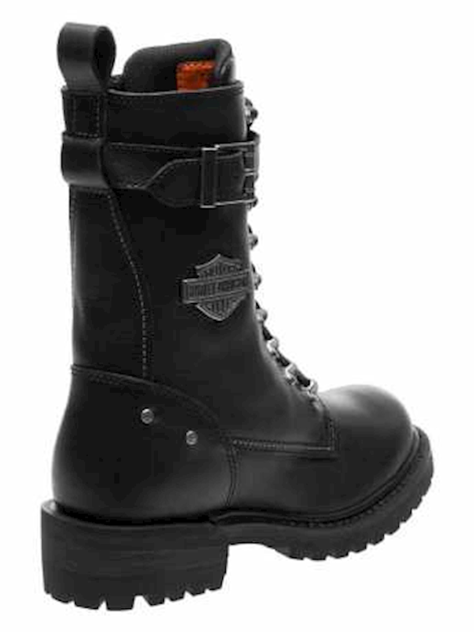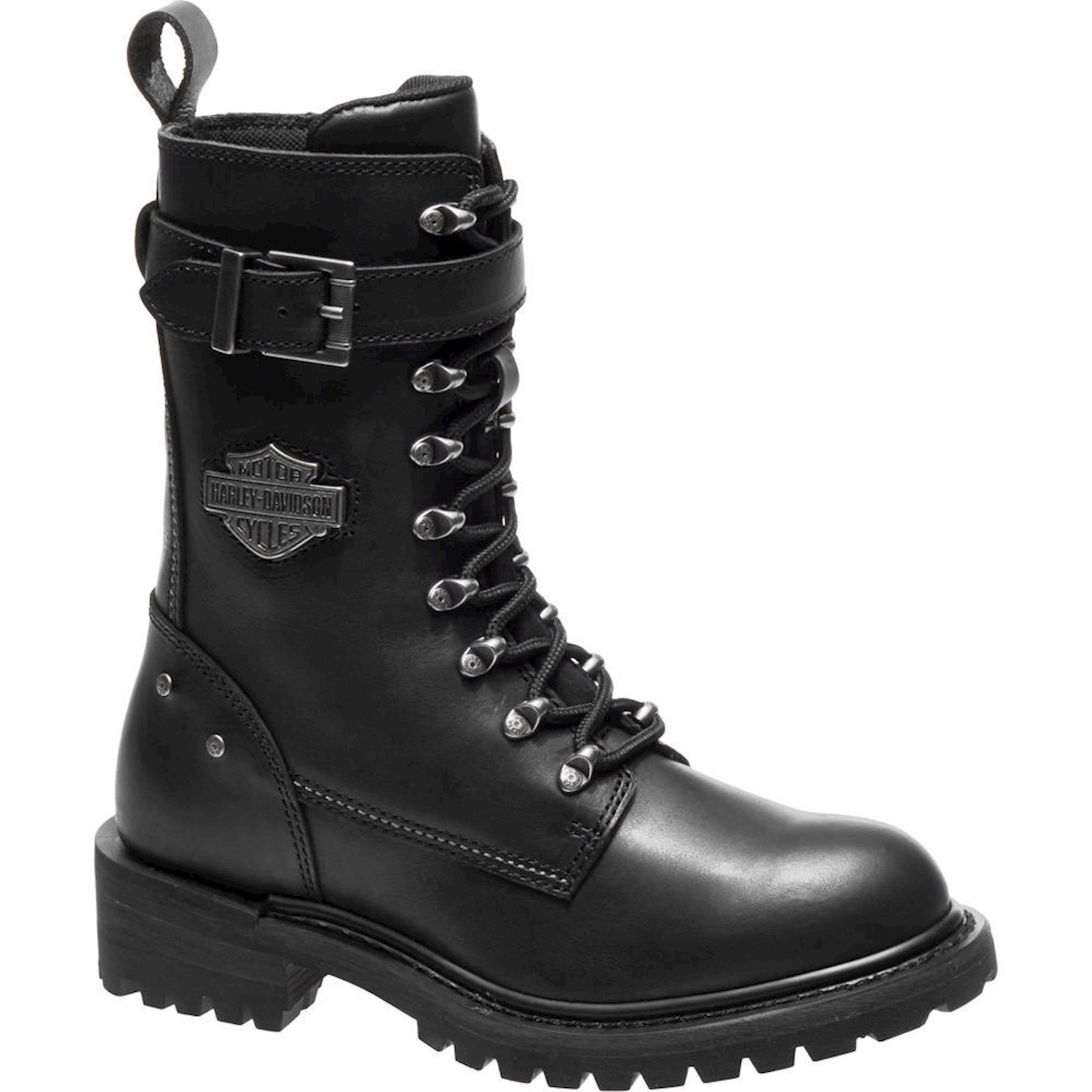 The original Harley-Davidson women's boots "Calvert" keep your feet safe and warm. CE certification. Full grain leather upper. Mesh lining. 8" Shaft height. 1,75" Heel height. Rubber outsole. Goodyear welt. YKK locking inside zipper. Heat resistant leather upper.