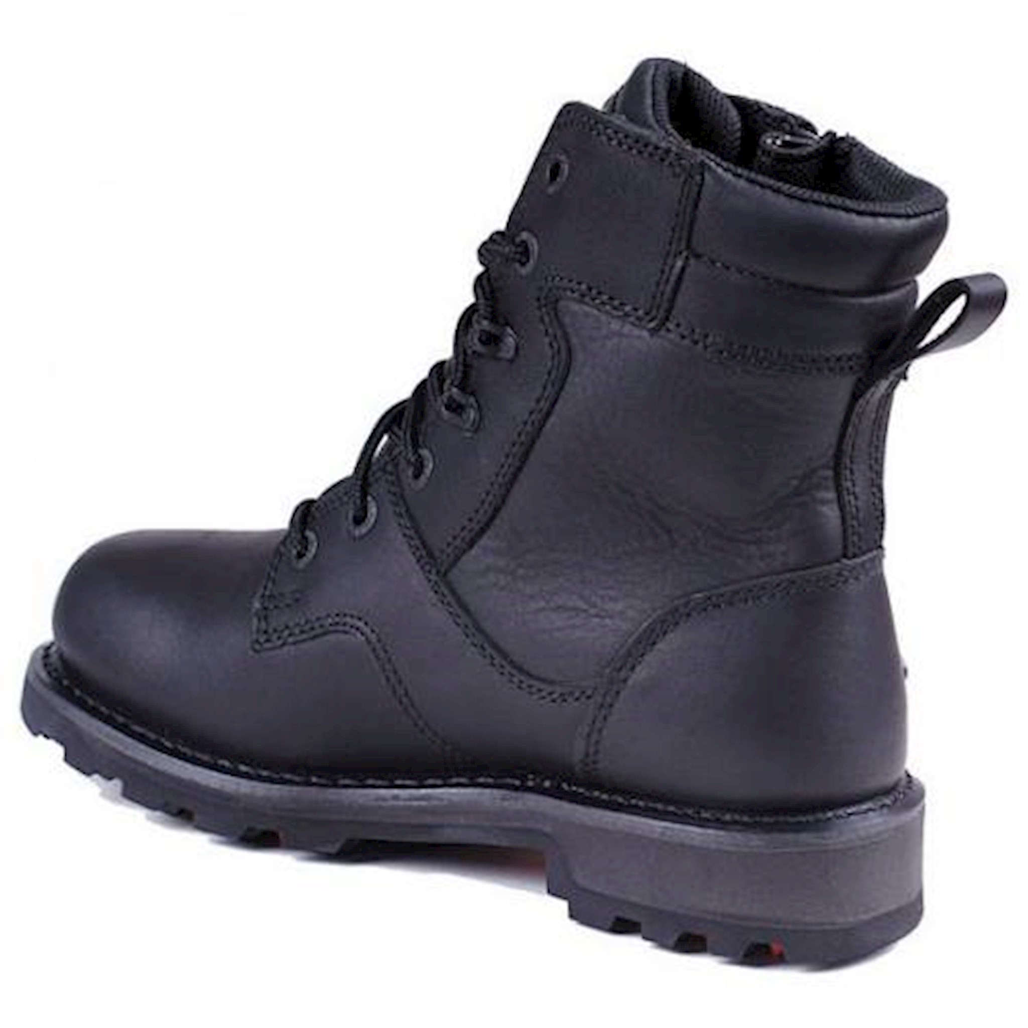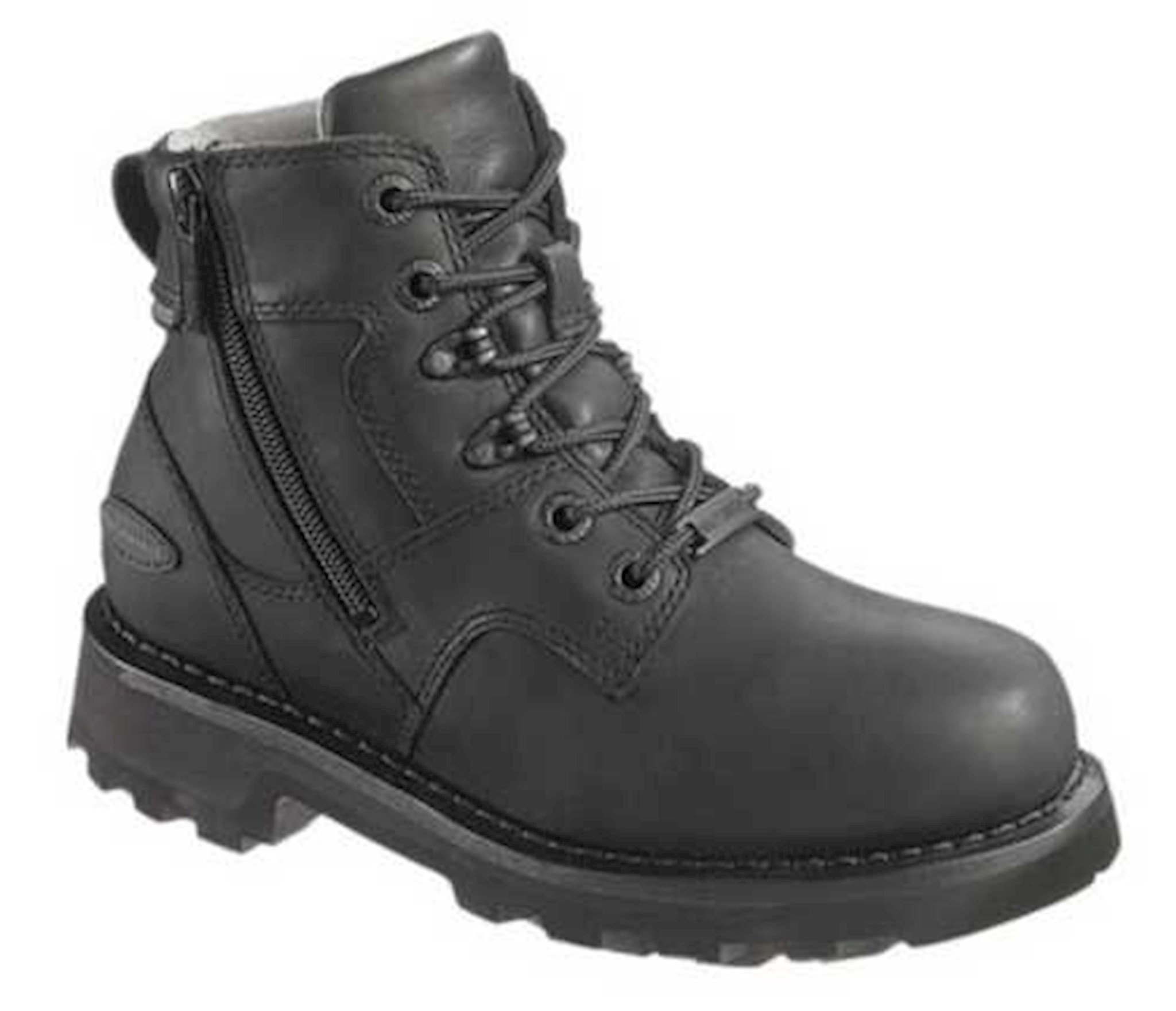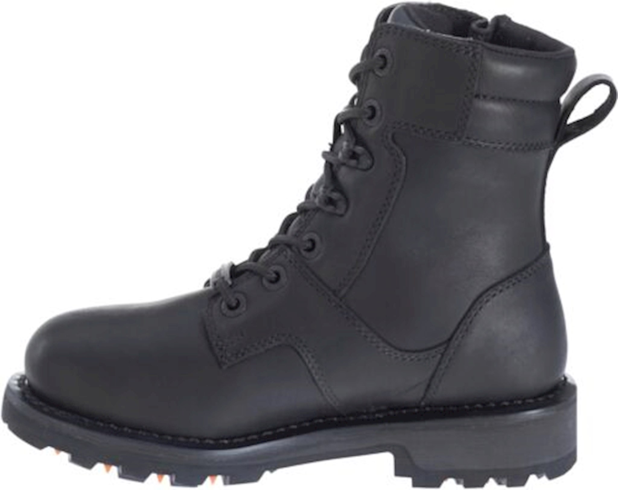 Leather. Made with the best full grain leather uppers available with a breathable Hydro-GuardTM membrane waterproof lining, Shock Absorbers Twin-PadTM Comfort Technology, and industry's best YKK locking outside zippers for ease of putting on and taking off. Totally blacked out design with Harley metal logo eyelets, metal Harley lace badge, with Performance, Waterproof, and Bar & Shield badging on the heel, near to cuff, and on the tongue. Lightweight, flexible polyurethane midsoles with rubber on the street side affords hours of comfortable walking, standing, or riding. The boot's sole, insole and upper are bound using resoleable .Goodyear Welt construction processes, the most labor intensive and durable construction method available. Shaft height: 5", Heel height: 1.5"
