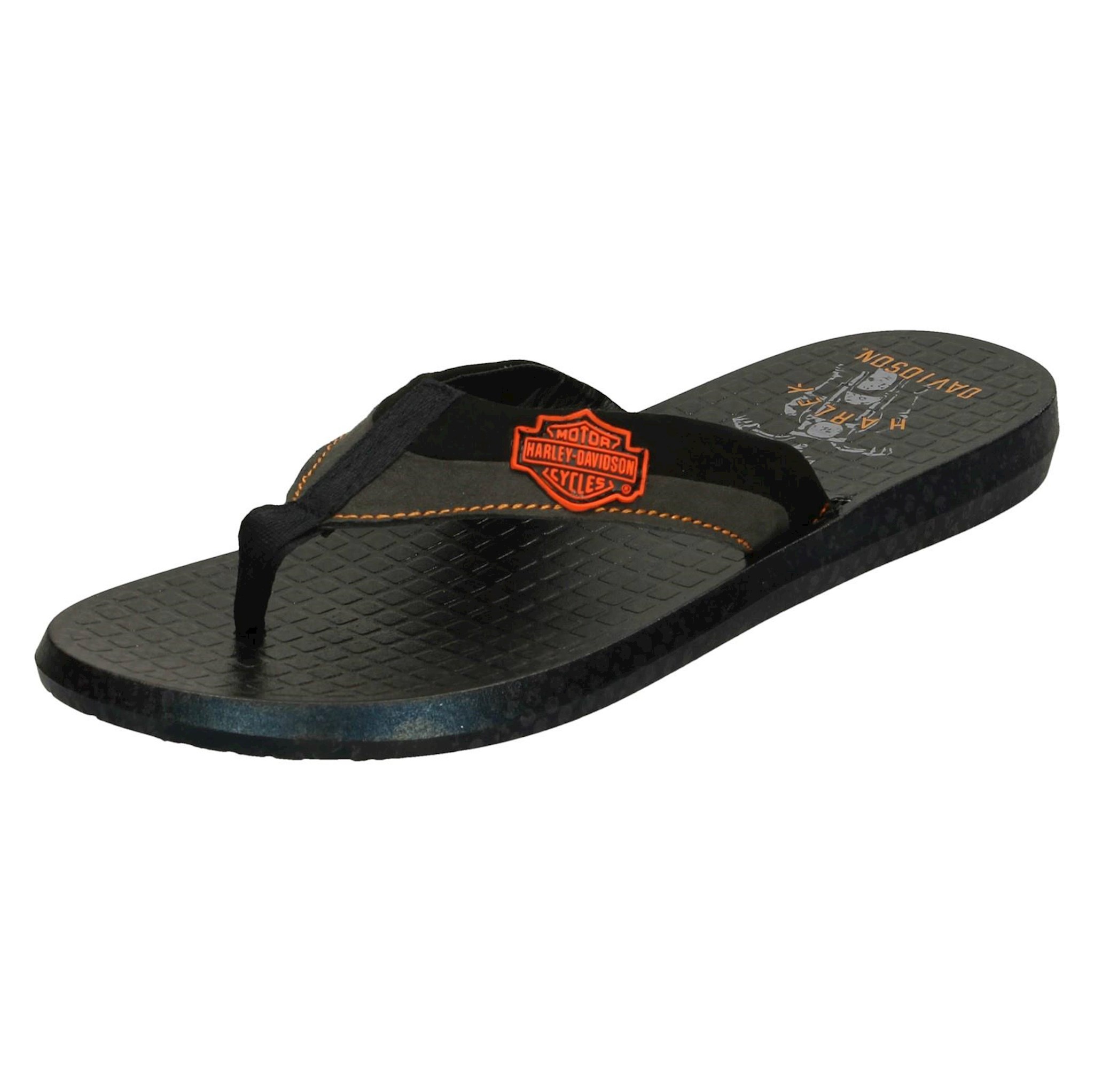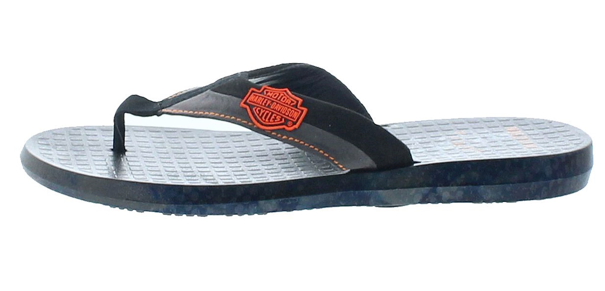 Slip on into these Harley Davidson Adams Flip Flop flips for a summer full of attitude. Smooth uppers and a rubber outsole make this sandal a comfortable statement maker. Heel Height 0.75". Cement construction. Rubber outsole.