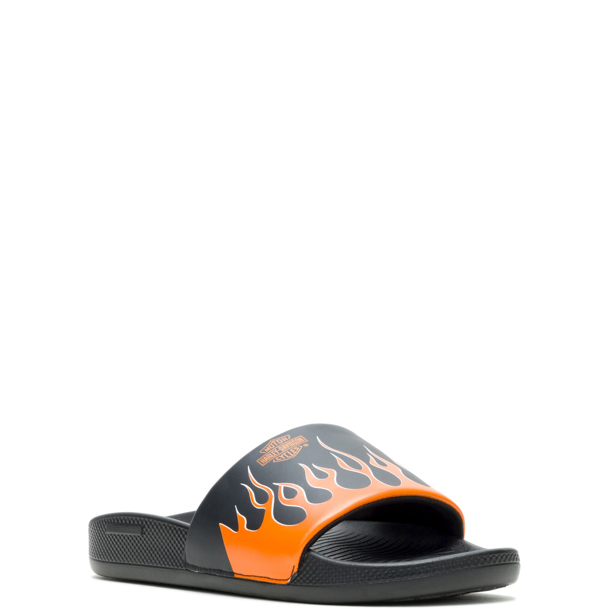 Slide into all-day ease with this Harley-Davidson Brazen sandal. Designed with a soft, comfortable footbed and bold flame graphics, it delivers relaxed comfort with an unmistakable attitude. Perfect for off-duty days, this slide brings iconic style to every step—no laces, just bold vibes.