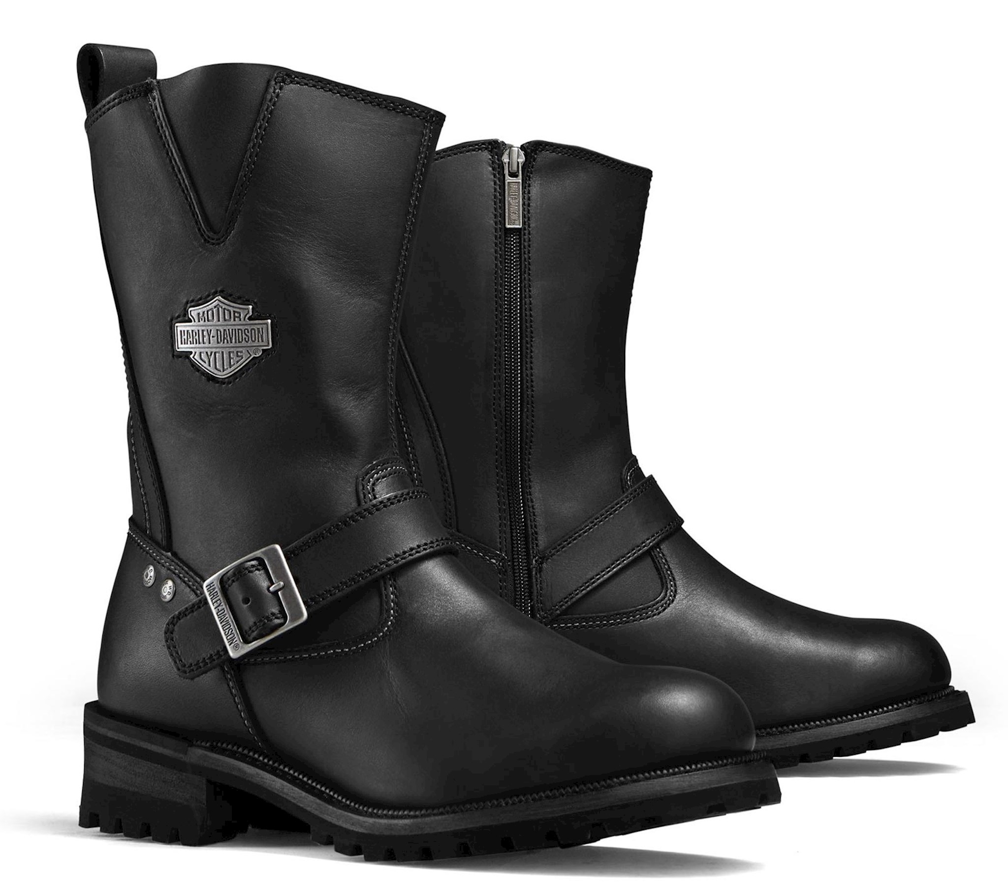 The original Harley-Davidson Boots "Bladen" are made of waterproof full grain leather upper. Mesh Lining 9" Shaft Height 1,75" Heel Height Rubber outsole Goodyear welt YKK locking inside zipper Heat resistant leather upper